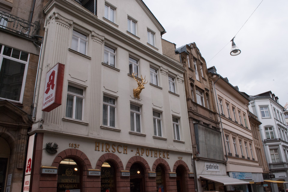 Unter den Fensterbrüstungen des 1. Obergeschoss waren in der Front und den beiden Erkern 11 aus Eichengehölz geschnitzte Relieftafeln, die beim Umbau 1928 ins städtische Museum kamen. 1725 erfolgten kleinere Umbauten. 1828 wurde das einstige Fachwerk-Obergeschoss gotisierend durch Steinmauerwerk ersetzt. Die hölzernen Reliefs unter den Front-Fenstern, welche die Tugenden Stärke, Gerechtigkeit, Nächstenliebe, Klugheit und Mäßigung darstellen, wurden dabei durch steinerne Kopien ersetzt. Die Originale aus Eichenholz können heute im Wiesbadener Museum besichtigt werden.