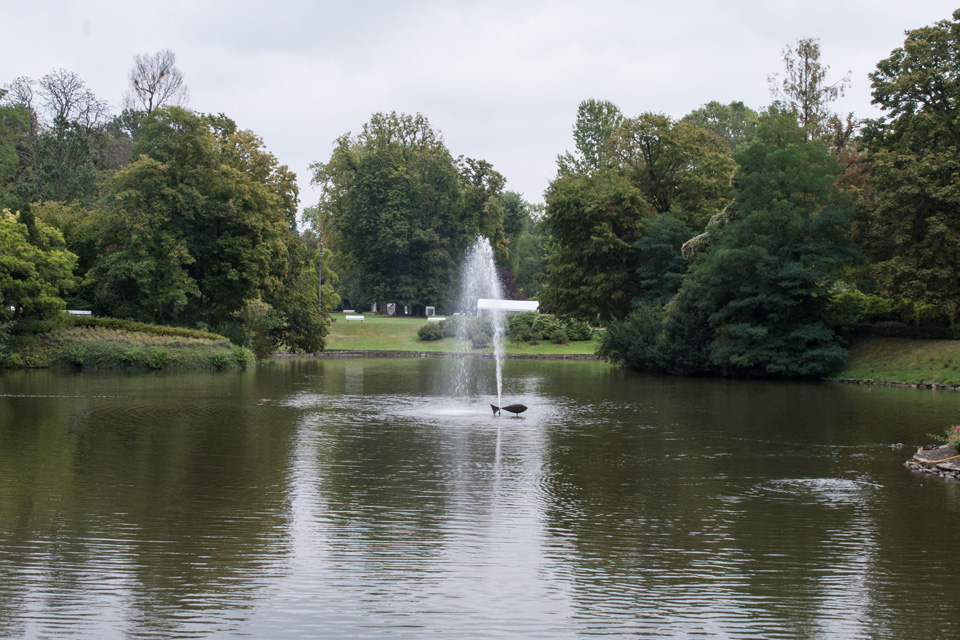 09.09.2019: Auch diese Anlage ähnelt eher einem englischen Landschaftspark. Schön ist der Teich mit der Fontäne.