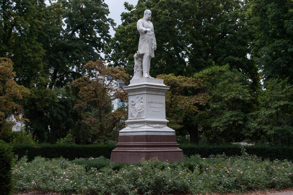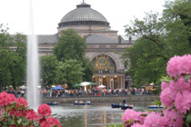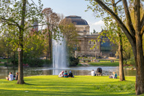 Dem Einfluss der heißen Quellen in seiner Umgebung verdankt der Warme Damm schon sehr früh im Jahr eine ansehnliche Blütenpracht. Die Wiese vor dem Staatstheater erfreut sich im Sommer großer Beliebtheit.