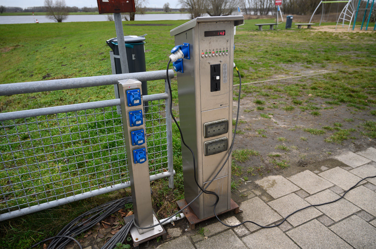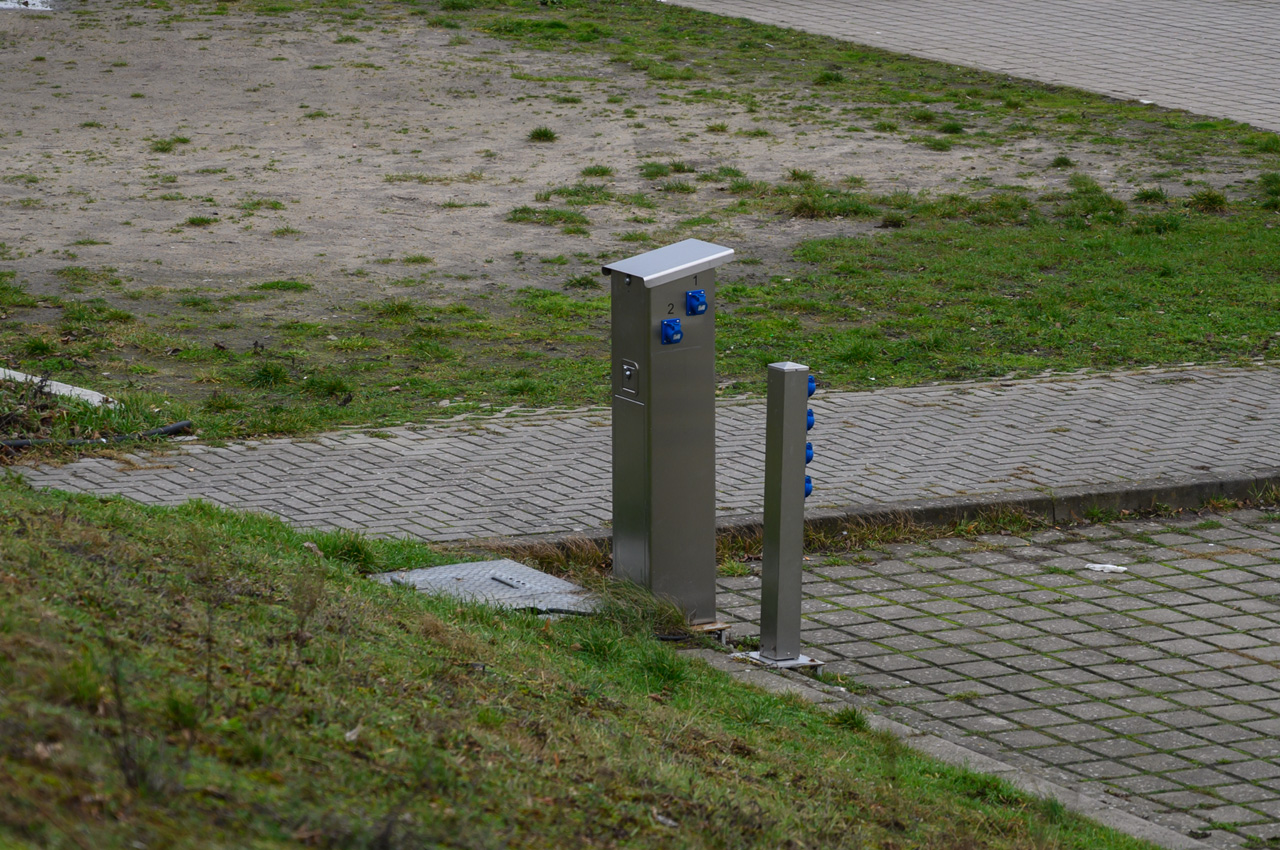 - Die Stromanschlüsse befinden sich an Säulen mit Bezahlautomat. Die sind in CEE-Ausführung. Die Platzierung der Säulen ist ungünstig. Man braucht gegebenenfalls ein längeres Kabel.