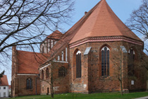 Nach 1450 wurde der innen dreiseitig und außen fünfseitig geschlossene Hallenumgangschor begonnen, der im Jahr 1474 gemäß einer Inschrift gewölbt und 1479 geweiht wurde. Er bildet mit den äußeren Anbauten, die nur in den Obergeschossen große Fenster hat, eine einheitliche Baugruppe. Die Anbauten wurden unten als Sakristei beziehungsweise als Vorraum, in den Obergeschossen als Bibliothek beziehungsweise Kalandkapelle genutzt. Am Ende des 15. Jahrhunderts wurde die zweijochige, etwa quadratische Marienkapelle nach Süden an das frühere Querschiff angebaut. Sie hat einen streng gegliederten Staffelgiebel mit darunter angeordneten Stichbogen- sowie Kreisblenden neben breiten vierteiligen Fenstern und steht offenbar unter dem Einfluss der Heiligblutkapelle von Kloster Heiligengrabe und ihrer Nachfolgebauten, wie etwa die Wallfahrtskirche Alt Krüssow.