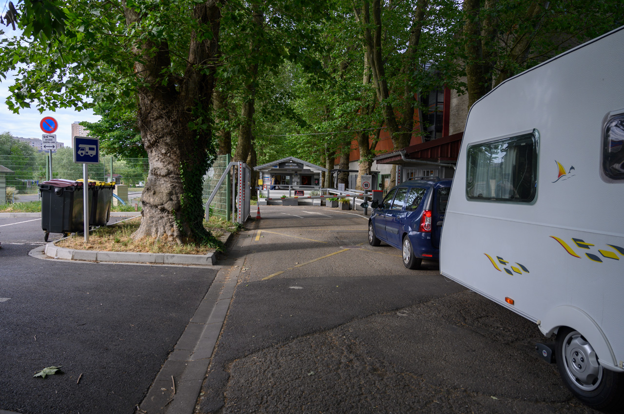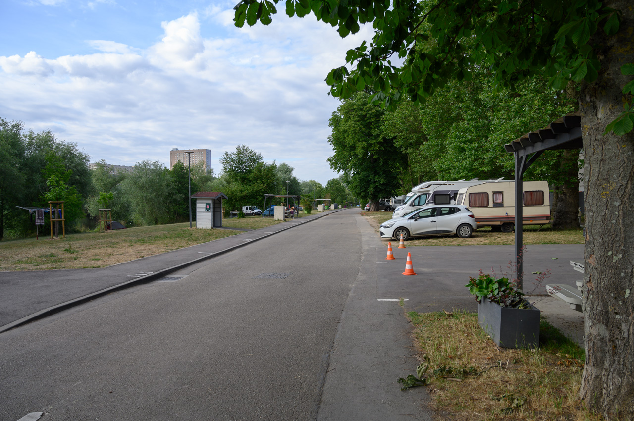 - Der Stellplatz liegt am Ufer der Mosel und ist nur durch eine Schrankenanlage zugänglich. Bevor die geöffnet wird, muss man sich in der Rezeption anmelden, dort bekommt man eine Stellfläche zugewiesen. Die Stellflächen sind sehr großzügig bemessen, aber teilweise sehr schräg und uneben.