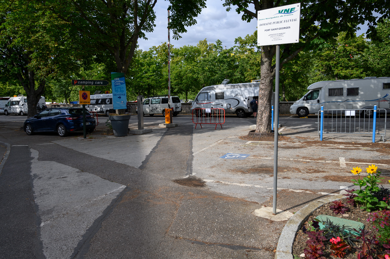 Der Platz liegt sehr günstig für einen Besuch der Altstadt. Auch zur Baguettbeschaffung frühmorgens und zu einem Lebensmitteldiscounter ist es nicht weit. Wer Ruhe mag ist hier falsch, man hat zumindestens tagsüber ziemlich heftig den Straßenlärm. Betreut wird der Stellplatz von einem Hafenmeister des angrenzenden Sportboothafens.