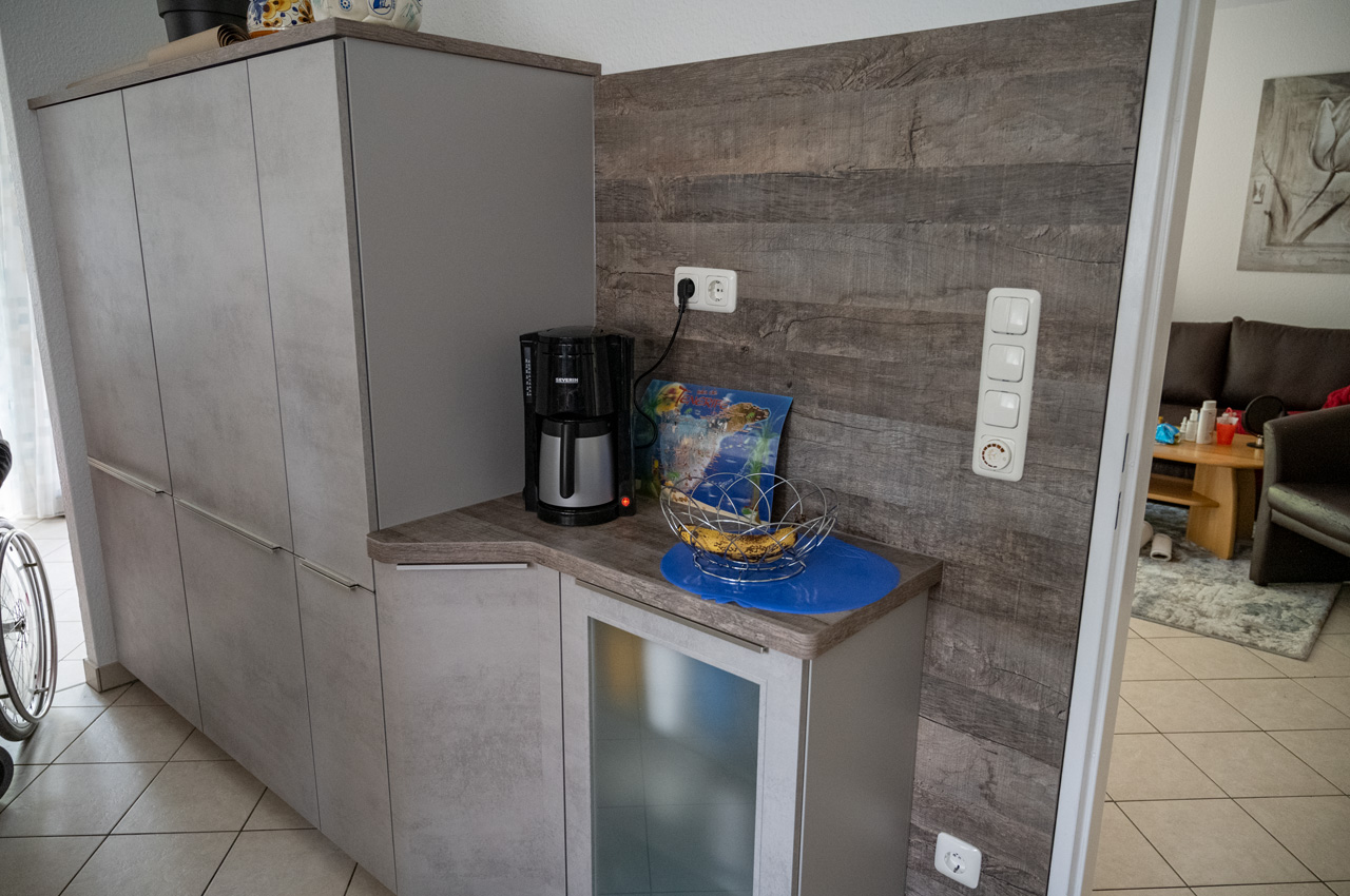 - Bei André wurde heute die neue Kücheneinrichtung aufgestellt und eingebaut. Damit gehen für André auch ein paar Leidenstage zu Ende an denen er aus der Hand leben musste, denn die alte Kücheneinrichtung wurde bereist vor Pfingsten ausgebaut. In der Zwischenzeit hat der Lebensgefährte von Jutta den Raum renoviert.