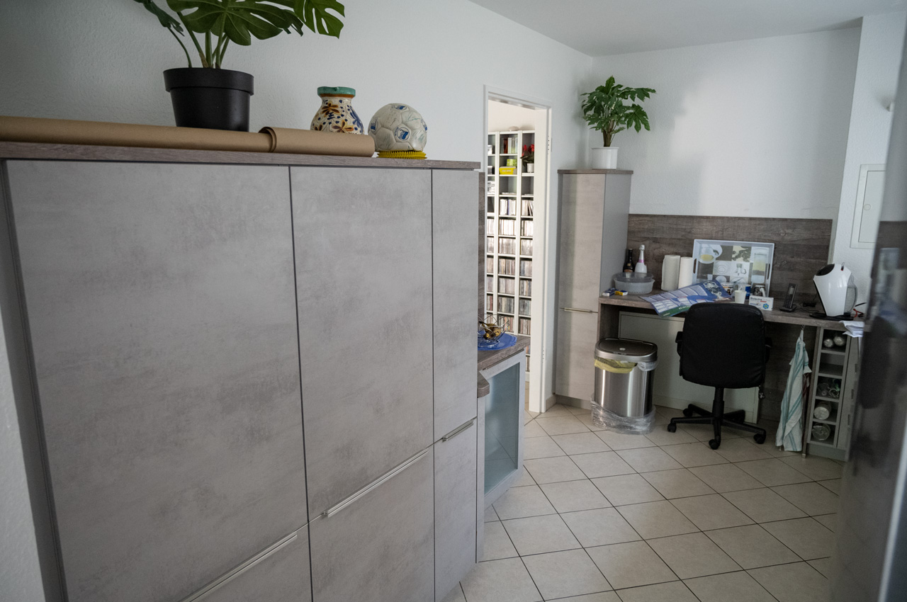 Das Bad entspricht nicht der Nutzungsgewohnheit von André. Er benutzt z. Bsp. nicht die Badewanne, da er sehr schwer in sie hineinkommt und umgekehrt. Das Waschbecken direkt hinter der Tür ist mit dem Rollstuhl auch schlecht.