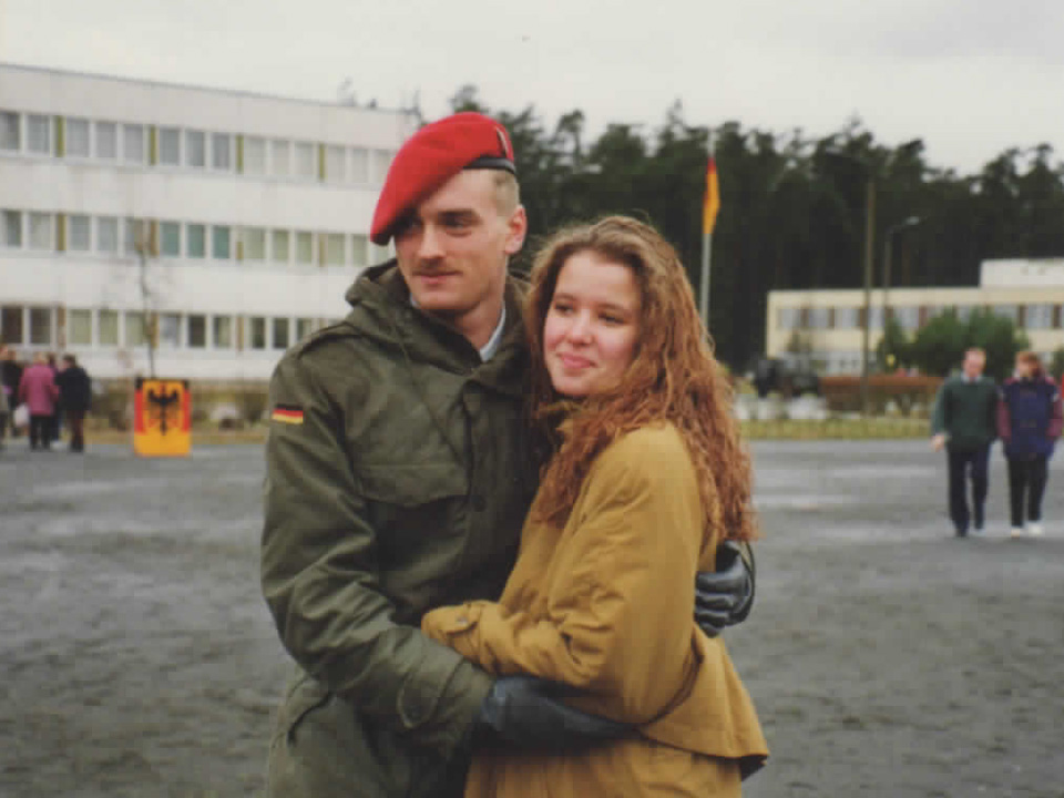 - 12.09.94 André leistet bei der Bundeswehr seinen Fahneneid in einer Kaserne nahe der Müritz. Ich habe mit Vivien-Sara und Janine daran teilgenommen.