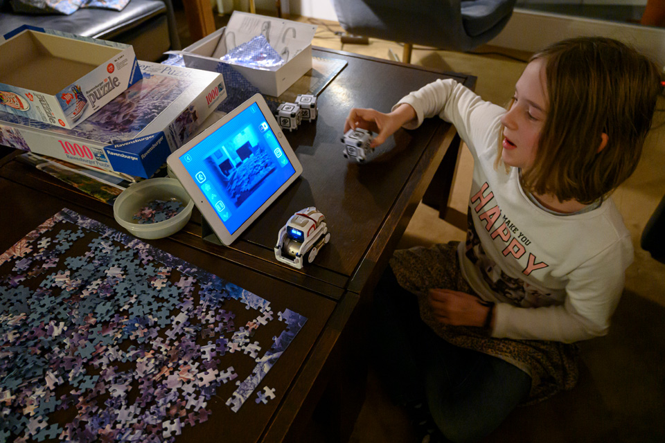 - 23.11.2019: Unser Ziel in Bremen war das Haus von Karin. Sie hatte uns angeboten, dass wir uns mit unserem Womo in ihre Grundstückseinfahrt stellen können. Das war Zentimeterarbeit, aber es hat sehr gut funktioniert. Hella und Jenny kamen pünktlich zum Kaffee. Wir haben gemeinsam geschlemmert, Karin hatte leckeren Kuchen besorgt. Jenny hat uns ihren Cosmo vorgeführt, ein elektronisches Spielzeug mit Intelligenz. Das kleine Gerät kann sprechen und lässt sich über eine App zu verschiedenen Aktivitäten ansteuern.