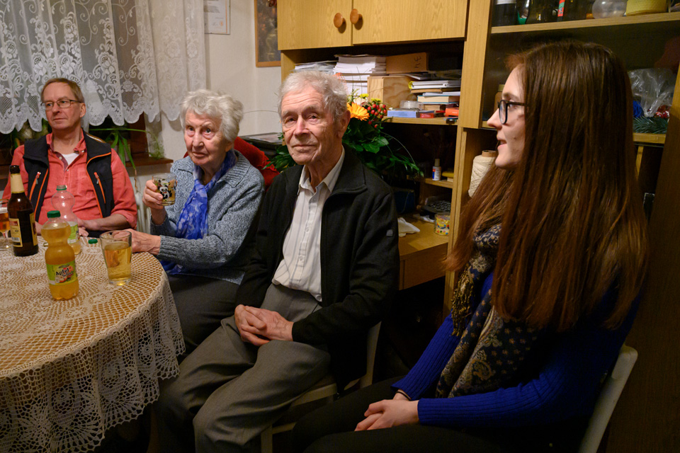 Klaudia und Dieter waren ohne Auto da, weil sie beide Alkohol trinken wollten. Draußen lag Schnee und da mit einer Taxe fahren zu müssen ist nicht ganz so schön. Wir haben uns kurze Hand entschieden, die beiden nach Hause zu fahren.