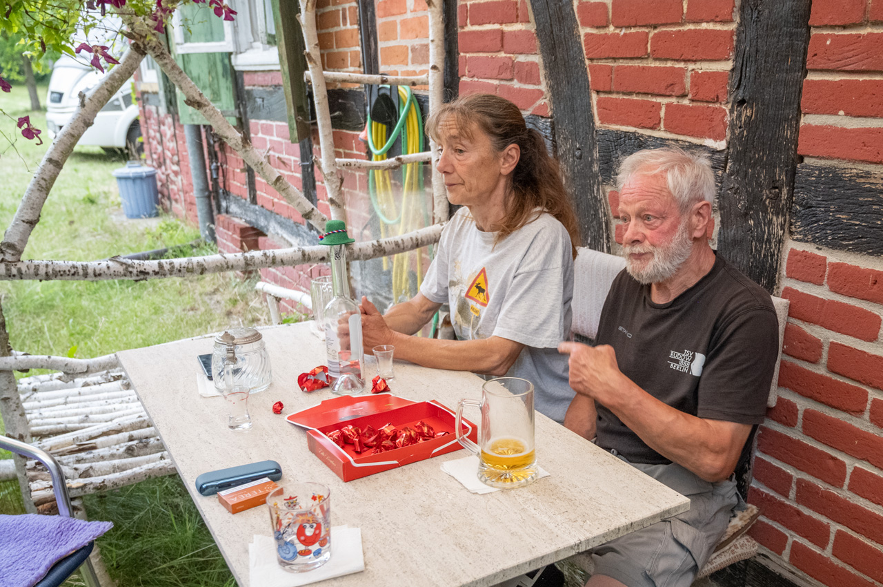 Unser Start in Berlin entsprach unseren üblichen und vielfach trainierten Abläufen. Wir sind über die Altstadt Spandau auf direktem Weg zur B5 gefahren. Also dieses Mal nicht über Falkensee, weil dort zurzeit Bauarbeiten zu erheblichen Staus führen. Kunow, unser Zielort liegt direkt an der B5. Wir hatten keine Staus, mussten allerdings wieder die Umleitung bei Wusterhausen bis Kyritz fahren. Das hat unseren Weg um ca. 12 km verlängert. Wir konnten problemlos auf den Hof von dem Grundstück der beiden unser Womo einparken. Wir haben einen kurzweiligen Nachmittag und Abend verbracht. Es war sehr schön mal wieder ohne Feierlichkeiten mit den beiden Zeit zu verbringen.