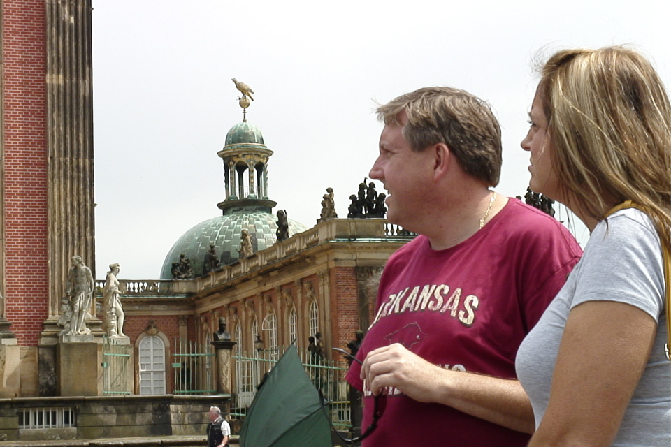 - 24.06.11: Wir sind mit einem Sightseeingbus nach Potsdam gefahren und haben dort die wichtigsten Schlösser besichtigt. Die Führung war auf englisch, was für die Jennings das Ganze einfacher machte und natürlich auch für uns, da wir nichts übersetzen mussten. Wir waren auch an der Stelle wo das Potsdamer Abkommen unterzeichnet wurde, im Schloss Cecilienhof, was die Amerikaner sicher besonders interessiert.