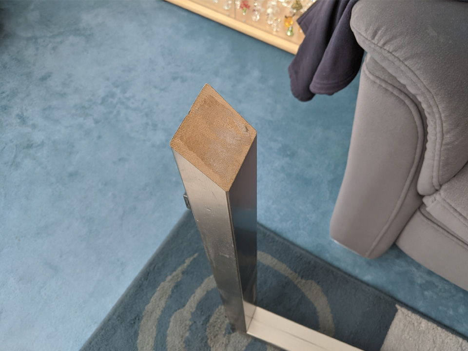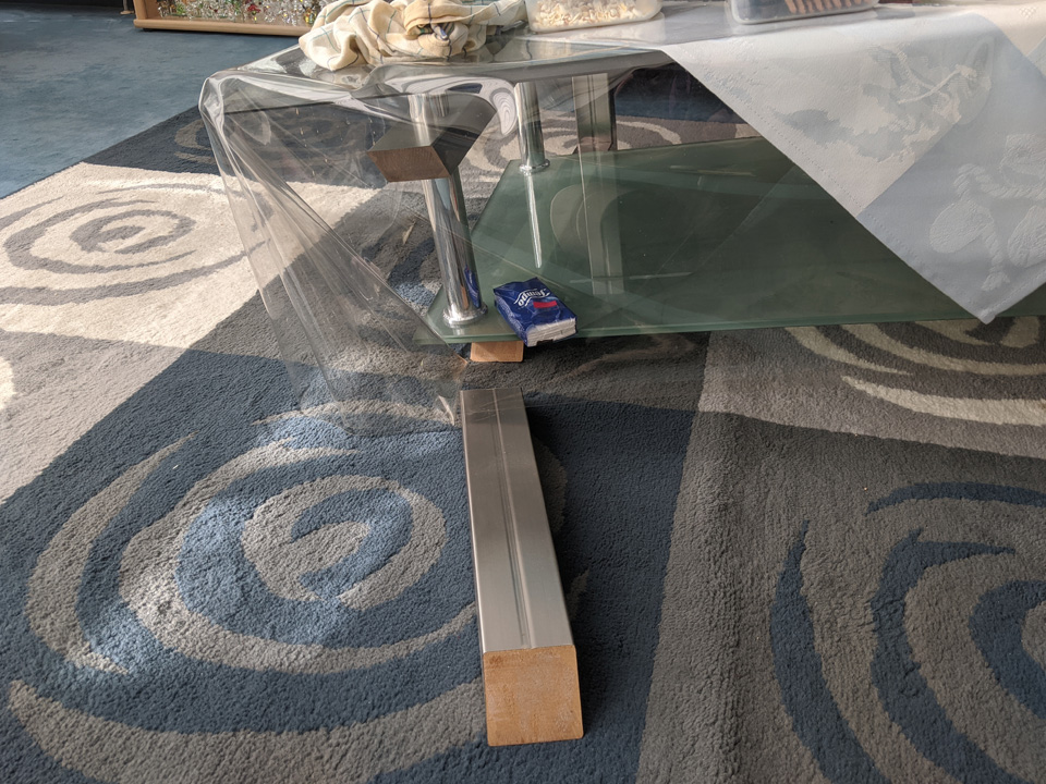 - 29.02.2020: Beim Kaffeetrinken gab es einen lauten Knall und danach stand unser Tisch der Sitzecke plötzlich schief. Auf einer Seite lag die Tischplatte fast auf dem