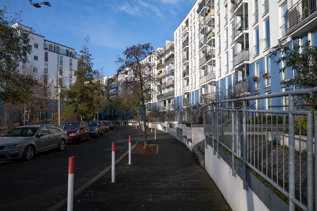 Weiter entlang am Kanal nehmen die bewohnten Lauben zunehmend ab und man kommt in ein Gebiet, wo die kleinen Häuschen in tiefem Winterschlaf versunken sind. Quer durch diese Laubenkolonie sind wir wieder zurück zum Neubaugebiet und schließlich zu unserem zu Hause.