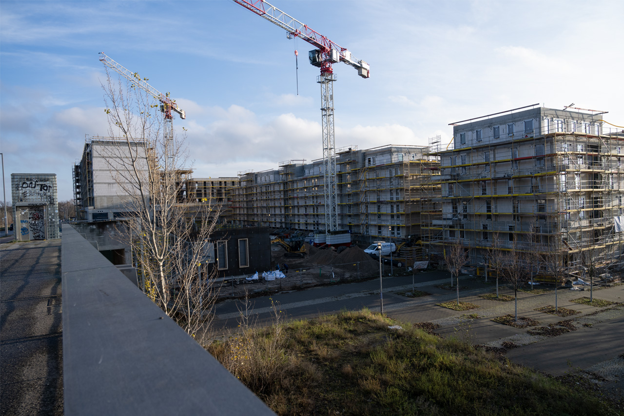 Wir sind die Brückentreppe hinab zum Havelufer gestiegen, vorbei an dem Neubaukomplex. Gewaltig, was da in den letzten Monaten aus dem Boden geschossen ist. Hier entstehen neue Wohnungen zur Miete.
