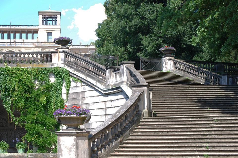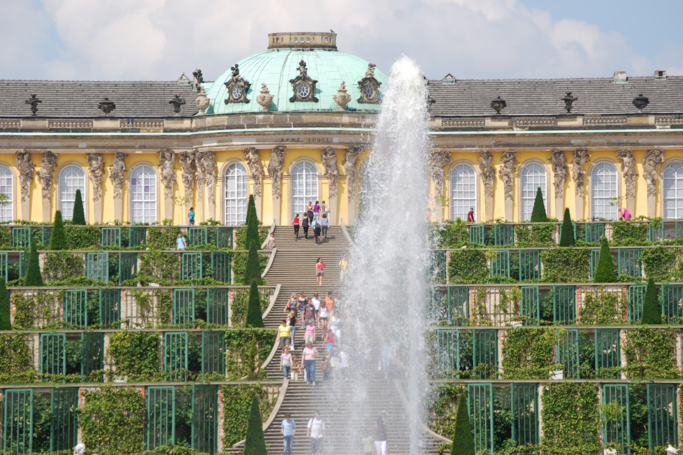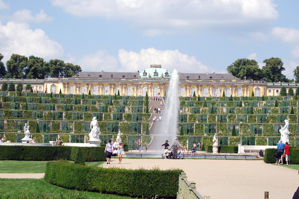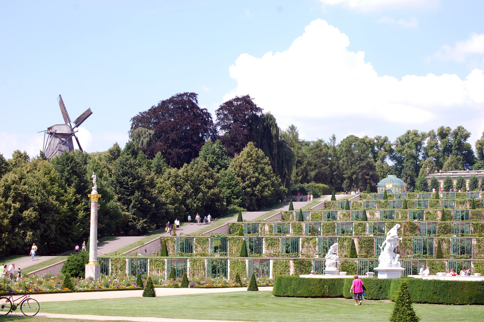 - 26.07.08: Wir sind mit den Rädern vom Resort Schwielowsee nach Potsdam gefahren. Wir haben das Schloss Sanssouci besichtigt und sind durch den Schlosspark spaziert. Eine Anlage der Superlative. Sehr schöne Blumenrabatten und Springbrunnen. In diesem sehr großen Park kommt keine Langeweile auf. Ständig wechseln die Ansichten und kleine Bauten lockern die Landschaft auf.