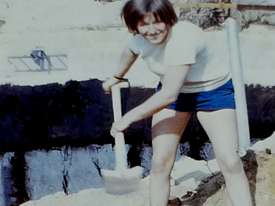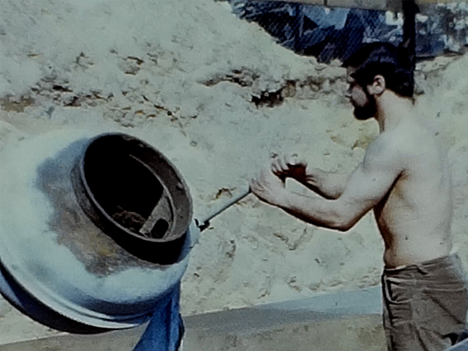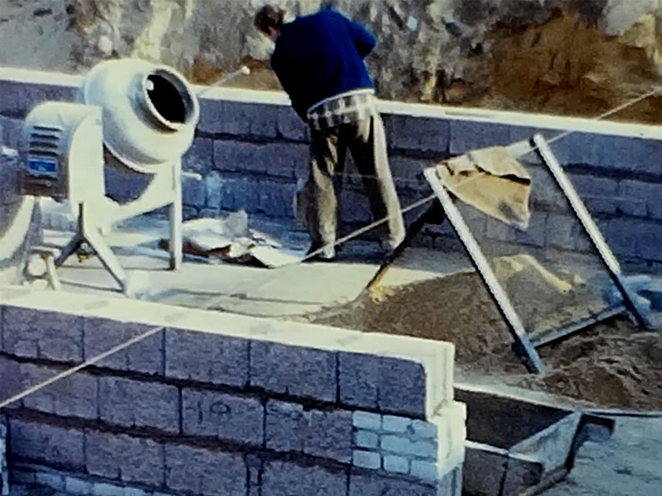 - Mai 1983: Nachdem ich mit dem Haus richtig fertig war, begann die Planung für eine überdachte Terrasse mit einem Schwimmbecken. Die von den ersten Poolvarianten gesammelten Erfahrungen sind in diesen Pool eingeflossen. Möglichst wenig Wasser (Wasser ist nicht nur in der Beschaffung teuer, sondern auch im Unterhalt) und trotzdem schwimmen können. Das lief eindeutig auf eine Gegenschwimmanlage hinaus. Juttas Arbeitsbeziehungen haben uns bei der Beschaffung geholfen, sowohl fachlich, als auch preislich. Die professionelle Filteranlage stand im Heizungsraum vom Keller und die Strahlpumpe der Gegenschwimmanlage in einer kleinen Grube vor dem Becken. Das Becken habe ich komplett gemauert und dann mit Gfk ausgekleidet um es wasserdicht zu bekommen. Darauf habe ich dann die Fliesen geklebt. Eine tolle Sache, aber wenn das Becken schön und ansehnlich bleiben soll, hat man sehr viel Arbeit.