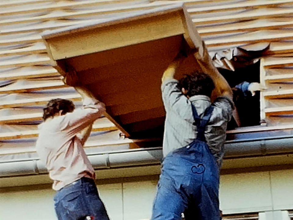 - Anfang August 1973: Unser Fertighaus von Streif ist auf einem Lkw der nun in unserer Einfahrt steht. Noch heute soll das Haus bis zum Abend regensicher sein. Nach 5 Arbeitstagen ist schlüsselfertige Übergabe. Es fehlt nun noch Strom und Wasser. Wir haben mit einem Großeinsatz mit allen Freunden und Bekannten den über 40 Meter langen Weg aufgebuttelt und die Wasserleitung bis zum Haus verlegt. Den Straßenanschluss hatten die Wasserwerke schon gelegt. Das Elektrokabel wurde separat verlegt.