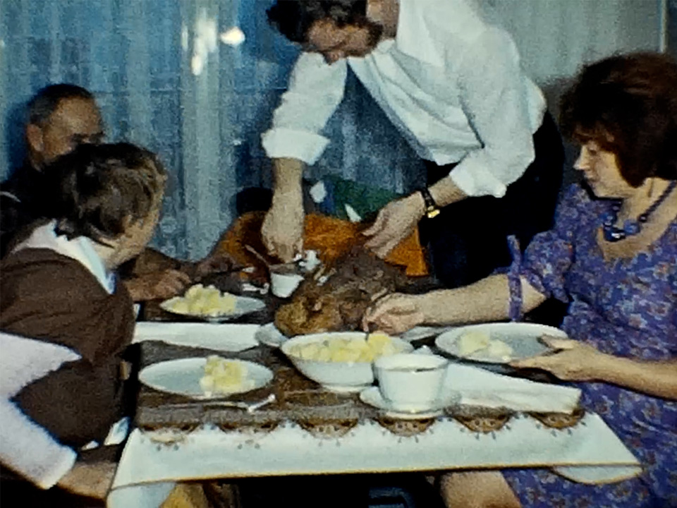- 15.01.1983: Mein Spaß am Filmen, hat mich dazu getrieben, unser alltägliches, gemeinsames Abendessen zu filmen. Die Videokamera war relativ neu und ich suchte nach Gelegenheiten sie aus zu probieren. Das Gerät bestand aus zwei Teilen, der eigentlichen Kamera und dem Bandgerät mit einer großen VHS-Kassette und einem entsprechend schwerem Akku. Das Bandgerät konnte man sich mit einem Riemen auf die Schulter hängen.