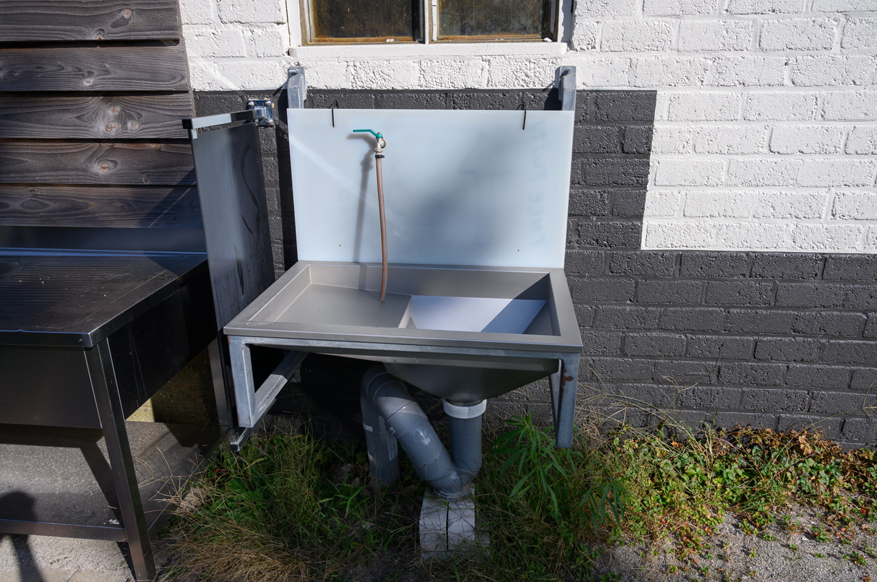- Der Grauwassereinlass besteht aus zwei Gullys, die jeweils gut anfahrbar sind. Für die Fäkalienentsorgung steht ein VA-Becken zur Verfügung. Der Trinkwasseranschluss ist in entsprechender Entfernung mit einem Schlauch an der Wand des Sanitärgebäudes.