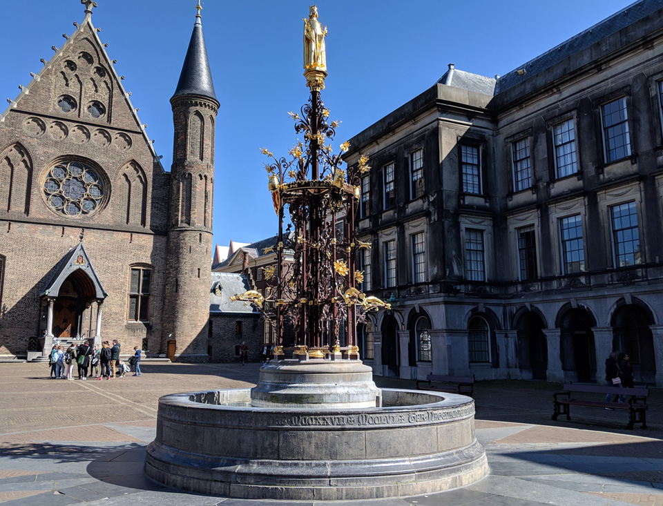 Vor dem Palast stehen Denkmäler für Wilhelm den Schweiger von 1845 und für Königin Wilhelmina.