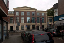 Die strenge klassizistische Fassade wird einzig durch den Giebel gelockert, der das Wappen der Oranier trägt.