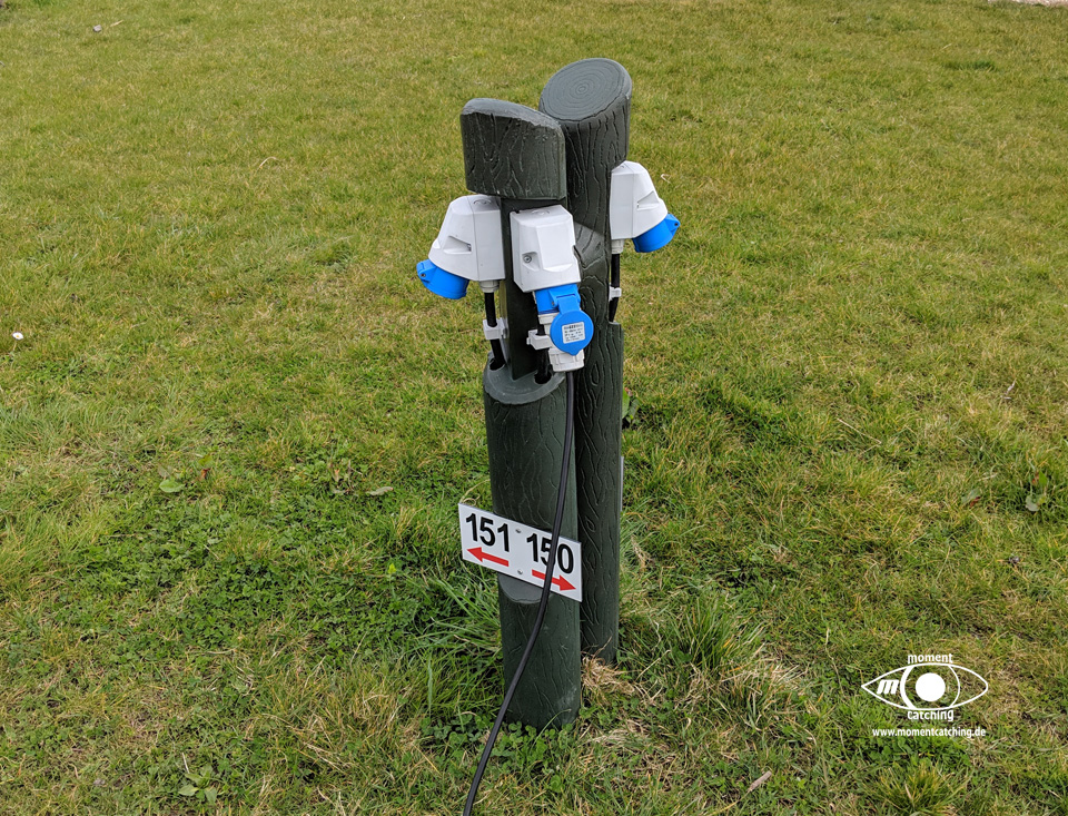 - Jeder Platz hat einen Stromanschluss mit CEE und 16A Absicherung.