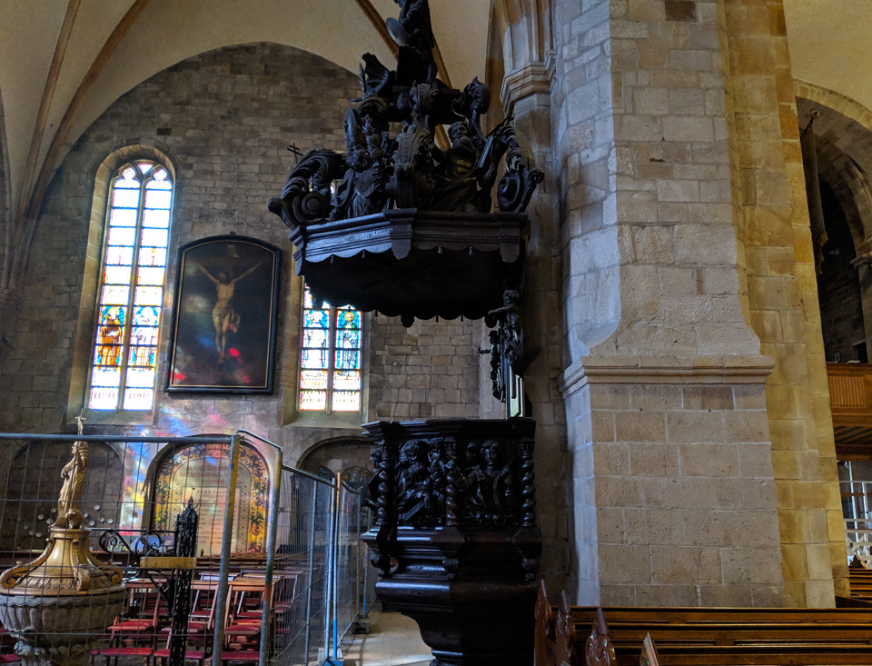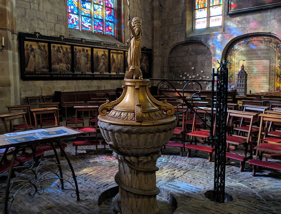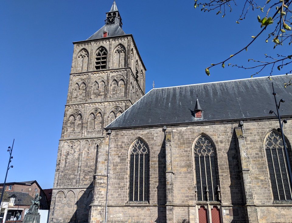 Die St.-Plechelmus-Basilika (nl. Sint-Plechelmusbasiliek) ist eine römisch-katholische Kirche. Um das Jahr 765 ließ der Missionar Plechelmus eine Vorgängerkirche erbauen, die er dem heiligen Silvester widmete. Als zweite Kirche errichtete der aus Oldenzaal gebürtige Bischof Balderich von Utrecht 954 eine neue Kirche und widmete diese Plechelmus, von dem auch eine Reliquie vorhanden ist. Zugleich wurde ein Ordenskapitel gestiftet. Die heutige Plechelmuskirche wurde Mitte des 12. Jahrhunderts aus Bentheimer Sandstein im spätromanischem Stil westfälischer und sächsischer Prägung als kreisförmige Basilika mit einem dreiseitig geschlossenen Altarraum erbaut. Vom Vorgängerbau wurden ein Kirchenschiff, der Nordgang, das nördliche Querschiff und ein Chorjoch übernommen. Im Innenraum ruhen die Rippengewölbe des Schiffs auf dicken, viereckigen Pfeilern. Der Bau der Basilika wurde etwa 1180 abgeschlossen. Im Laufe der Jahre wurden noch verschiedene Elemente, wie zum Beispiel die Tore im Jahr 1240, hinzugefügt. Die Reformation beendete nach sieben Jahrhunderten im 17. Jahrhundert das Ordensleben. Die beeindruckenden Kapitelhäuser wurden für den Abriss im selben Jahrhundert verkauft. Von 1633 bis 1810 wurde das Kirchengebäude von der evangelischen Gemeinde von Oldenzaal genutzt, die wegen der geringen Mitgliederzahl die Instandhaltung aber stark vernachlässigte. Nach der Rückgabe an die katholische Kirche im Jahre 1810 durch König Louis Bonaparte wurde der monumentale Lettner aus dem 15. Jahrhundert abgebrochen. Die notwendige Restauration der Kirche erfolgte in mehreren Abschnitten, die bedeutendste durch den Architekten Jos Cuypers, der die Sandsteinwände und mittelalterlichen Verputze wieder frei legen ließ. Die Glockenkammer im Kirchturm ist die größte ihrer Art in Europa. Das Carillon besitzt 48 Glocken, von denen fünf auch als Läuteglocken dienen. Die größte ist die Maria von 1493 vom berühmten Glockengießer Gerhard van Wou mit einem Gewicht von 2400 kg. Die anderen vier sind die Beatrix (1600 kg), Irene (1150 kg), der Henriette (680 kg) und der Everdina (480 kg), die alle im 20. Jahrhundert gegossen wurden. Homepage mit Öffnungszeiten und Eintrittsinformationen. |