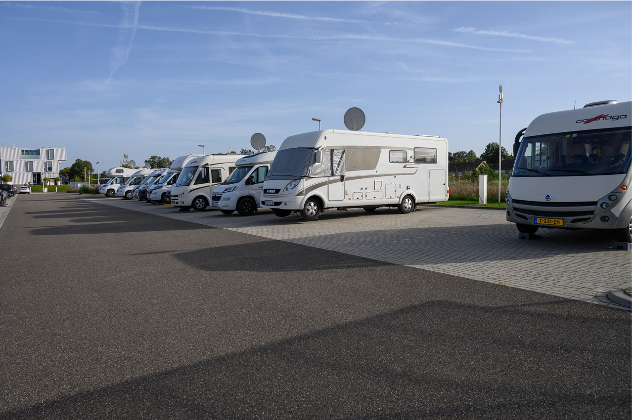 - Die Stellflächen für Wohnmobile befinden sich auf dem Marinagelände. Es gibt zwei Areale. Eins mit Pflasterung und Zugang zu Stromanschlüssen und ein zweites mit Rasenboden ohne Stromanschlüsse. Die Stellflächen auf dem gepflastertem Gelände sind markiert.