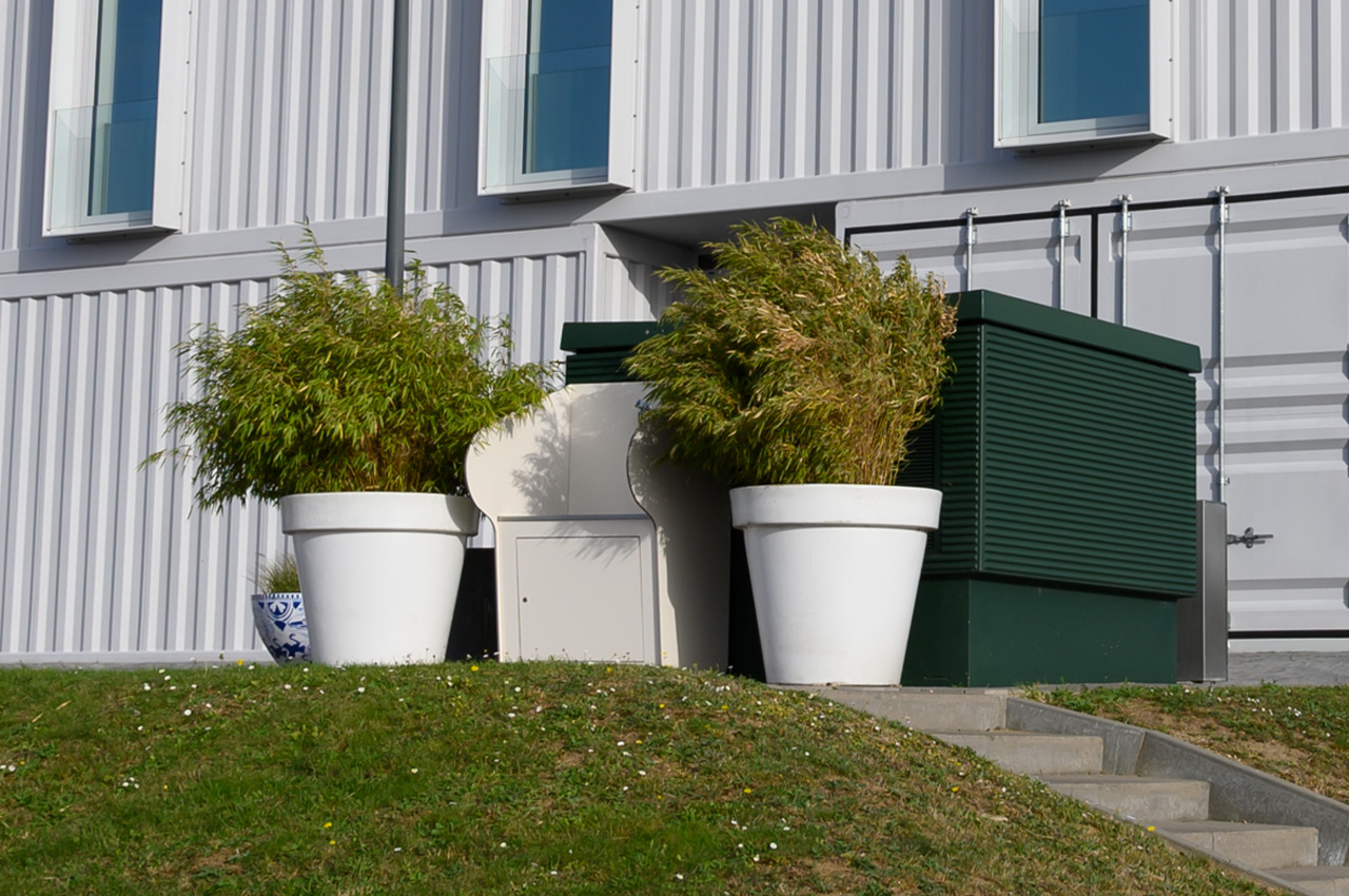 - Es gibt im Pflasterareal drei Stromsäulen mit CEE Anschlüssen und 16A Absicherung.