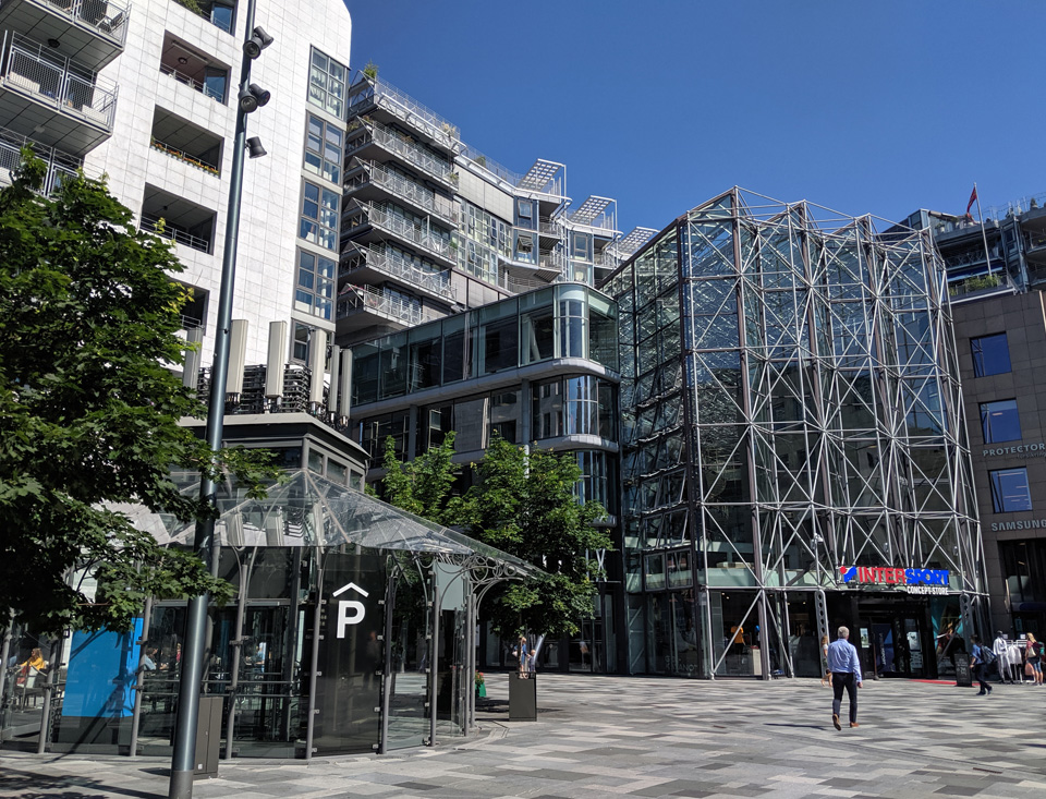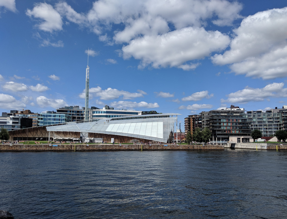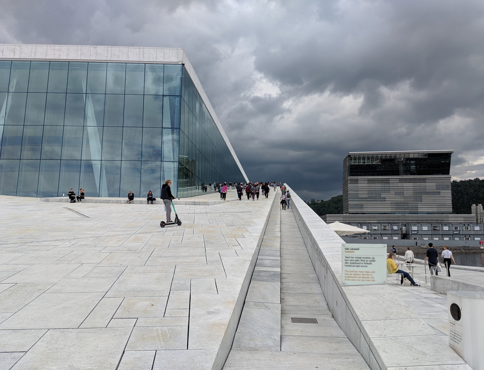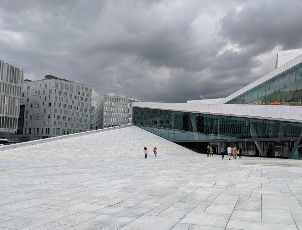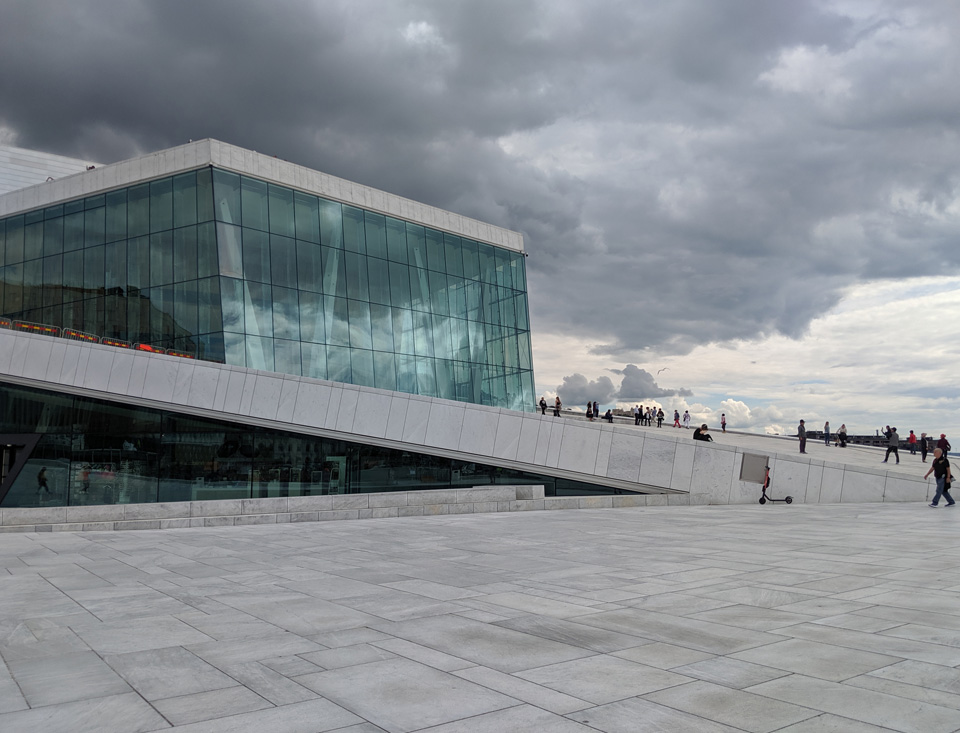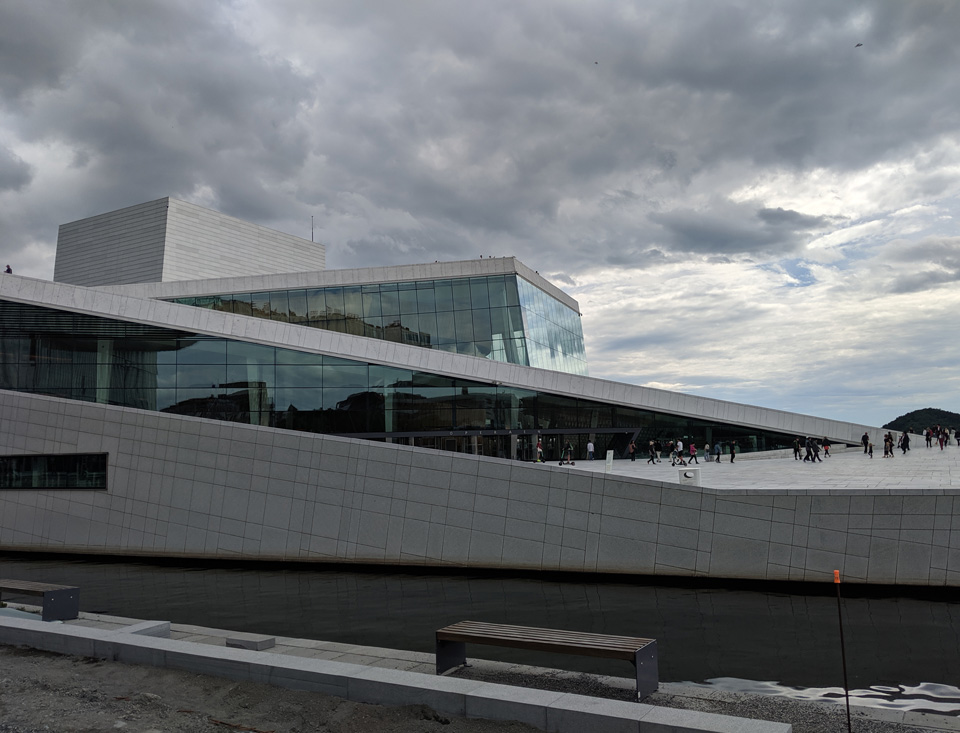 Die Fassade des Gebäudes besteht zu 90 Prozent aus weißem italienischen Carrara-Marmor und zu zehn Prozent aus norwegischem Granit, der in Rennebu abgebaut wurde. Die architektonischen Grundlinien ernteten von der Fachwelt einhellig Lob. Umstritten ist jedoch der massive Einsatz der verwendeten Marmorsorte, für die allein 57 Millionen Kronen (circa 6,4 Millionen Euro) aufgewendet worden waren. Bereits vor der Eröffnung hatte sich ein größerer Teil der 36.000 Marmorplatten leicht gelblich verfärbt.
