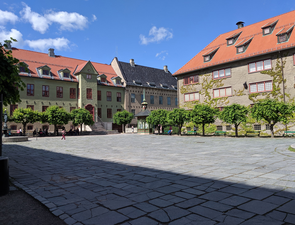 Im Mittelalter lag westlich vor dem Romeriksfløyen der Vedhagen (deutsch: Baumgarten oder Holzgarten). Es war ein abgeschlossener, befestigter Küchenhof. Hier wurde Brennmaterial aufbewahrt, es gab ein Schlachthaus und ein kleines Räucherhaus.