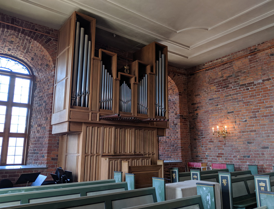 Die große Orgel der Kathedrale wurde in den Jahren 1997–1998 von der norwegischen Orgelbaufirma Ryde & Berg hinter dem historischen Prospekt von Lambert Daniel Kastens (1726–1729) neu erbaut. Es handelt sich dabei um das fünfte Instrument; das erste Instrument wurde bereits 1702 erbaut, es folgten weitere Instrumente in den Jahren 1729, 1888 und 1930 (E. F. Walcker, 102 Pfeifenreihen; die Walcker-Orgel wurde durch den Neubau 1998 ersetzt).[4] Das neue Instrument hat 53 Register (über 4.000 Pfeifen) auf drei Manualen und Pedal. Die Spieltrakturen sind mechanisch, die Registertrakturen sind elektrisch (Setzeranlage).