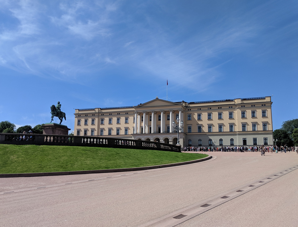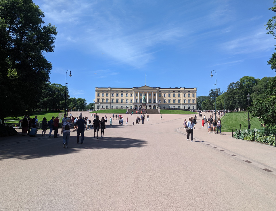 Das klassizistische königliche Schloss zu Oslo befindet sich in Staatsbesitz und ist dem König von Norwegen zur Verfügung gestellt. Es liegt am Ende der Karl Johans gate und ist von einem 22 Hektar großen Park umgeben. Das Schloss hat mehrere Funktionen zu erfüllen. Es dient als Residenz des Königs, als Ort der staatlichen Repräsentation, der Verwaltung der Monarchie und auch als vornehmstes Gästehaus des Landes. Beim Bau handelt es sich um eine Dreiflügelanlage, die aus Backstein errichtet wurde und verputzt ist. Der dreigeschossige Hauptflügel ist durch drei Risalite aufgelockert, wobei nur der Mittelrisalit durch die Säulenfront hervorsticht. Dieser Flügel ist 100,80 Meter lang und 24,10 Meter breit. Die beiden zweigeschossigen Seitenflügel sind 40,70 Meter lang und 14,30 Meter breit. Das Schloss umfasst 173 Räume und gehört somit zu den kleineren Residenzen Europas.
