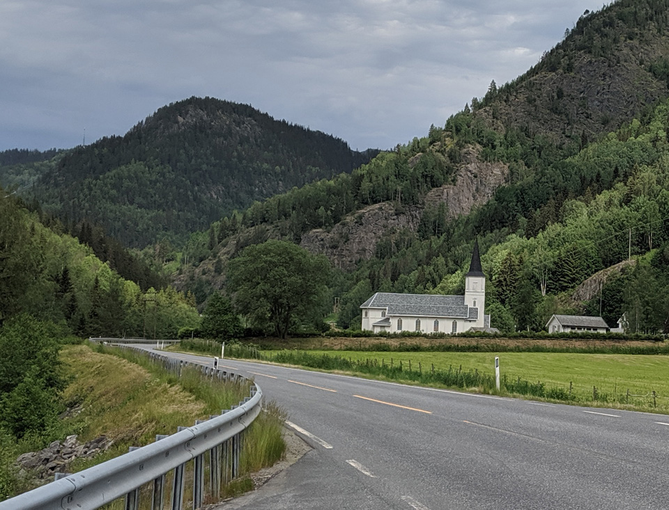 In Nore, etwa 6 km südlich von Rødberg gibt es eine kleine Stabkirche. gegen ein kleines Entgeld kann man die Kirche besichtigen. Die Innenwände sind komplett mit Gemälden behangen.