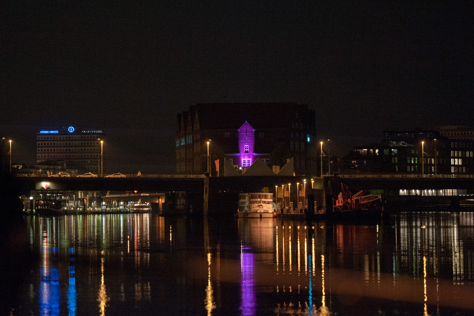 Von unserem Liegeplatz im Stadthafen von Bremen hatten wir einen schönen Blick auf die Skyline von Bremen. Besonders interessant war in der Dunkelheit das Lichtermeer.