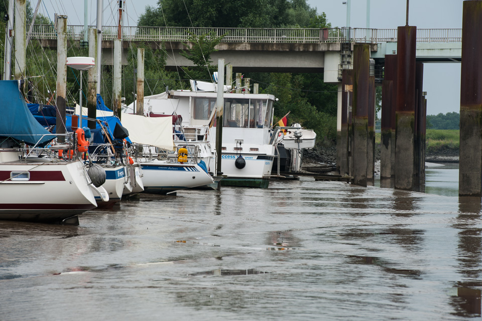 Wir sind hier mit der Selektra das erste mal richtig trocken gefallen. Sie stand bis zur Halskrause im Schlick und hat sich nicht mehr bewegt. Mal abgesehen von der angenehmen Ruhe, konnte man auch nicht mehr die Toiltette benutzen. Trotzdem haben wir von diesem Liegeplatz schöne Ausflüge in das alte Land gemacht.