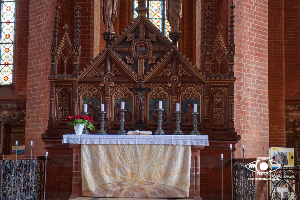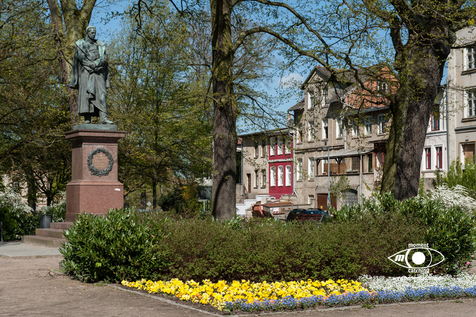 | Mittwoch 29.04.2015 | Heute früh war strahlender Sonnenschein, aber lausig kalt. Die frisch aufgebackenen Brötchen aus dem Café haben gut geschmeckt. Nach dem Frühstück haben wir die Fahrräder ausgepackt und uns auf den Weg in die Altstadt gemacht. Als wir am Moltke Platz ankamen, stellte ich fest, dass ich die Videokamera wohl aus dem Rucksack genommen habe, aber nicht in die Fahrradtasche gepackt habe. Susanne stellte dann fest, dass sie den Stadtplan zwar zusammengefaltet hat, aber auch hat liegen lassen. Also sind wir wieder zurückgefahren. Aber auch mit Videokamera wurde die Stadt nicht schöner. Sie hat einfach keinen Charme. Viele verkommene Häuser, schlechte Gehwege und leerstehende Geschäfte ergeben einfach ein trauriges Bild. Lediglich das Umfeld der Sankt Georgenkirche macht einen gepflegten Eindruck. Auf dem Rückweg zum Stellplatz waren wir noch im REWE. Mittwochs ist ab 18:00 Uhr Grillabend. Es gibt Thüringer Rostbratwürste mit Semmel und wer will mit Kartoffelsalat. Wir haben noch einen Eisbecher daraufgelegt von dem leckeren Spezialeis. |