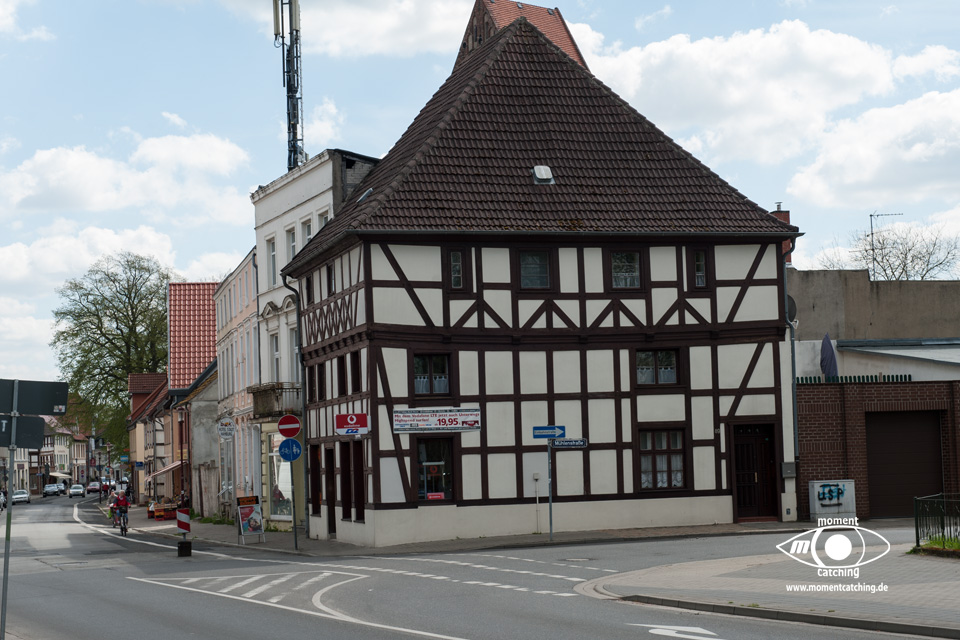| Montag 27.04.2015 | Es hat wohl die ganze Nacht durch geregnet. Schön, dass unser Womo dicht und warm ist. Die Brötchen hingen wie erwartet am Haken. Wir hatten ein leckeres Frühstück. Draußen hat es immer wieder kräftig geschüttet. Der Himmel provezeit nichts Gutes. Am Nachmittag hörte es endlich auf zu regnen. Wir haben uns zu Fuß auf den Weg in den Ort gemacht. Bis zum Zentrum von dem kleinen Ort Lenzen sind es ca. 2km. Der Ort hat sehr schöne alte Häuser, aber leider steht jedes Dritte leer. Die Kirche war leider verschlossen, genauso wie der Turm. Die Burg Lenzen ist für mein Empfinden eher ein Schloss. Das Hauptgebäude wird als Hotel genutzt. Ein größeres Nebengebäude ist Museum. Wir sind nicht reingegangen. An einigen Nebengebäuden und in der Parkanlage laufen z. Zt. Restaurierungsarbeiten. Schade, dass dieser Ort so einen sterbenden Eindruck hinterlässt. Ansonsten macht er einen gepflegten Eindruck. Auf dem Weg in den Ort haben wir gesehen, wie eine Saatkrähe sich eine kleine Graugans geschnappt hat und damit weggeflogen ist. Unglaublich, wenn wir es nicht selbst gesehen hätten. Zum Abend hin kam sogar noch die Sonne heraus. Abends waren wir in der Gaststätte und haben gut gegessen. Wir kannten die Gaststätte ja schon von unserem Herbstbesuch 2014. |