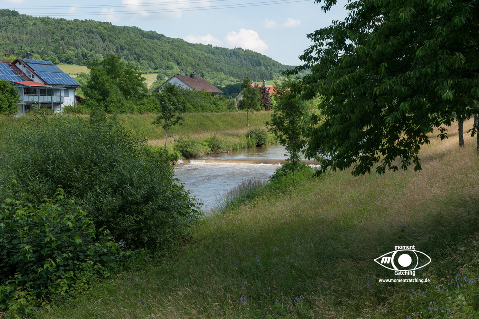 Heute haben wir Toast zum Frühstück gegessen und auf den Bäcker verzichtet. Es war strahlend blauer Himmel, also, Radtour war angesagt. Unsere erste Station war in Ofteringen das Kloster. Da es noch in Betrieb ist, hat man auch keinen Zutritt. Weiter ging unsere Fahrt immer entlang an der Wutach auf einem schönen Radweg. Die nächste Station war der Ort Eggingen. Hier gab es nichts Besonderes für uns, also weiter. Jetzt lief die Schweizer Grenze in der mitte der Wutach. In Eggingen läuft mitten durch den Ort ein Bach vom Berg herunter. Hier habe ich einige Fotos gemacht, weil das sehr malerisch aussah. Ansonsten ging es gleich weiter. Weiter ging es immer an der Wutach entlang, nun zum Ort Stühlingen. Hier sah es schon etwas mehr nach Leben aus. Ist ja auch eine etwas größere Stadt. Unterwegs hatten wir noch an einem Stauwehr Pause gemacht. In diesem Ort haben wir dann bei einem Italiener etwas gegessen. Wir hatten beide Pizza und ich wieder ein Bier vom Fass. Hier stimmte das Preis-Leistungs-Verhältnis. Danach haben wir kehrt gemacht und sind auf dem selben Weg wieder zurück nach Degernau. Es gab jetzt einige kleinere Kumuluswolken am Himmel. Es war sehr angenehm. Ideales Wetter für ein Schläfchen in dem neuen Stuhl. Mit dem großen Objektiv habe ich einige Bilder von dem Starennest gemacht. Den Abend habe ich mit Bildbearbeitung verbracht und Susanne mit Fernsehen und dem Bauernhof. Das war ein richtig schöner Tag, nicht zu warm und nicht zu kalt. Genau richtig für die Radtour.