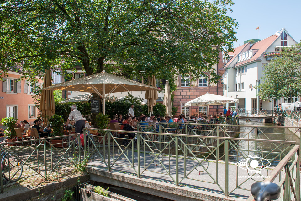 Die Altstadt von Freiburg ist beeindruckend. Durch die Hitze haben wir relativ schnell schlapp gemacht. Wir haben eine rote Wurst von der Susanne so schwärmt, gegessen. Schmeckt wirklich lecker. Am frühen Nachmittag waren wir dann schon wieder am Womo. Im Womo waren bereits 38°C, die sich schon zwei Stunden später auf 40°C erhöhten. Bei diesen Temperaturen hat man zu nichts mehr Lust. Ich habe erstmals unsere Campingmöbel herausgeholt. Wir haben uns hinter das Womo in den Schatten gesetzt. Gegen 18 Uhr hielt ein Eisauto an der Einfahrt zum Stellplatz. Wir haben uns ein leckeres Eis geholt. Das tat gut bei der Hitze. Eigentlich sollte es laut Wetterbericht am Nachmittag gewittern. Davon war noch keine Spur. Wir haben erstmals draußen Abendbrot gegessen. Hier war es heilwegs auszuhalten. Als wir gegen 1 Uhr ins Bett gingen hat es am Horizent geblitzt. Etwas später war das Gewitter über uns. Es schüttete wie aus Eimern.