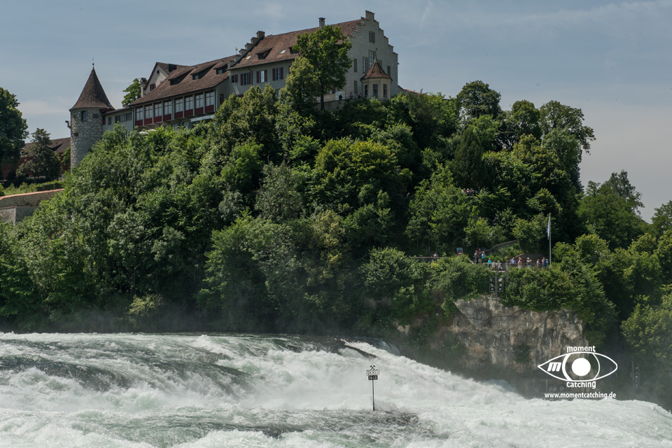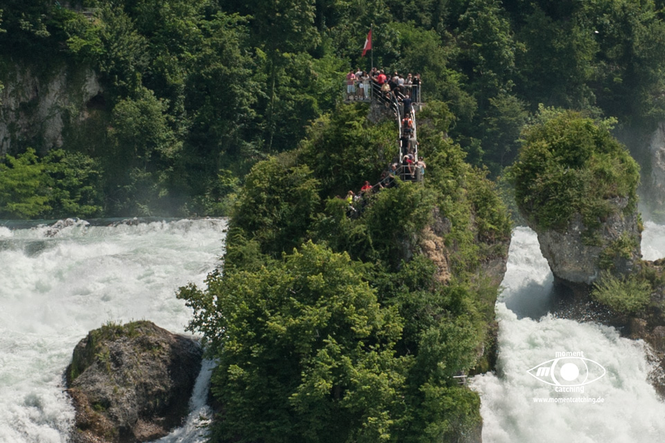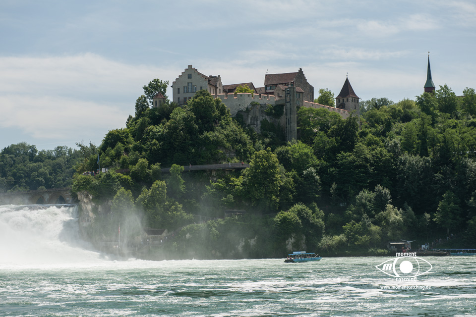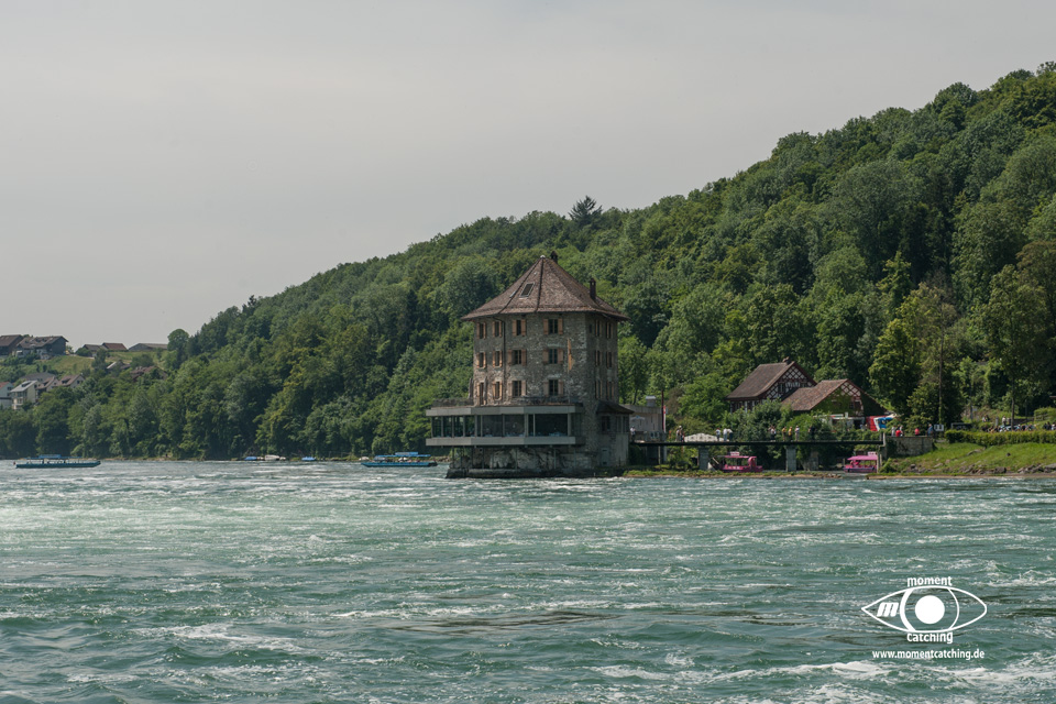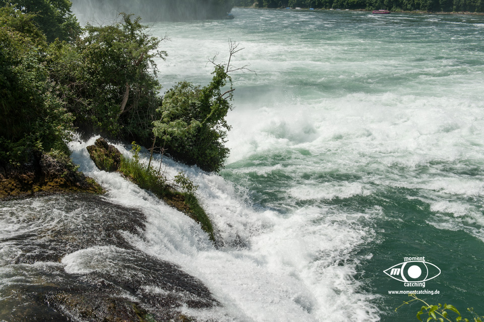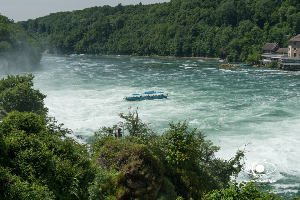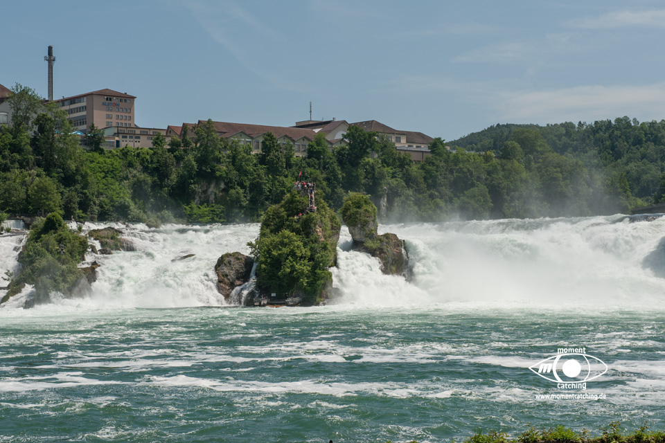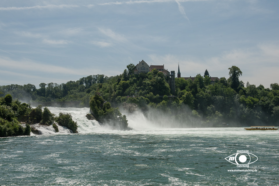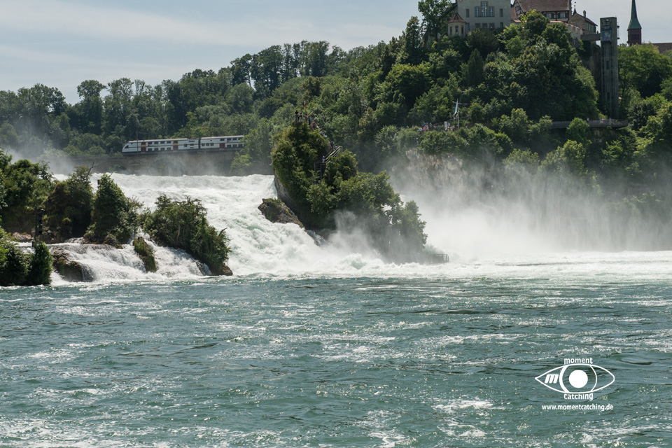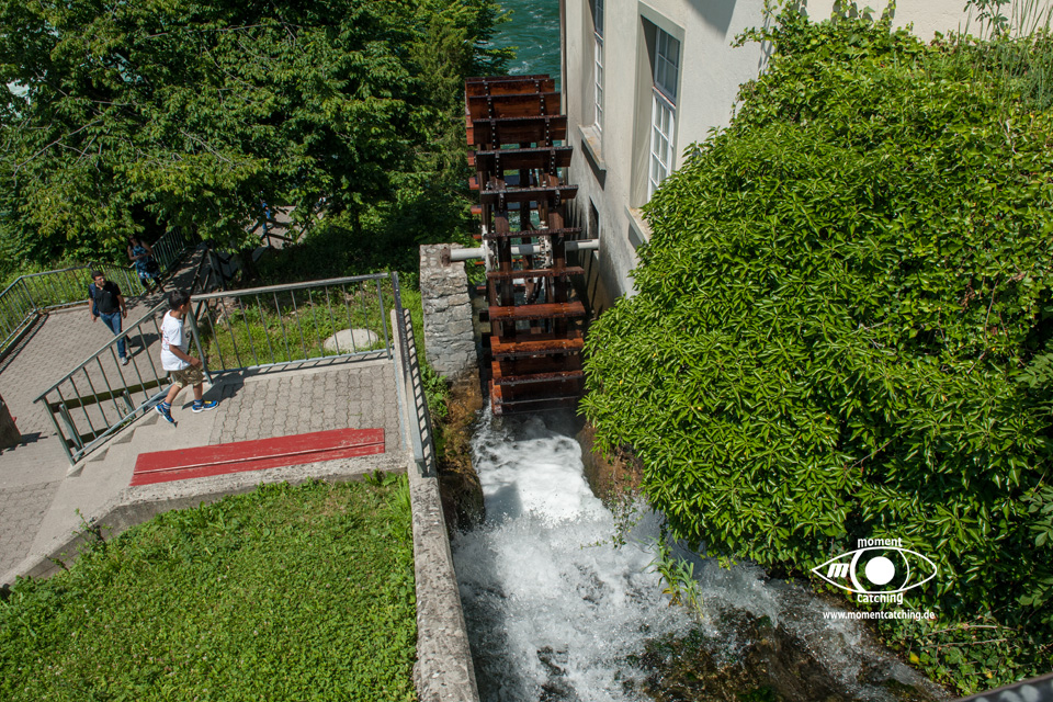 Es gab wieder aufgewärmte Baguetts aus Frankreich. Um 11:00 Uhr ging unser Zug nach Schaffhausen. Gleich am Anfang von Schaffhausen haben wir den Rheinfall vom Zug aus gesehen. Der Zug fuhr dann aber noch ein riesiges Ende in die Stadt. Vor dem Bahnhof stand ein Bus, an dem Rheinfall als Ziel stand. Der sehr nette Busfahrer empfahl uns ein Tagesticket zu nehmen, wenn wir wieder zurückfahren wollen. Als wir in Neuhausen austiegen, rief uns der freundliche Busfahrer noch nach, dass wir direkt nach unten gehen sollen und nicht den ausgeschilderten Weg nehmen sollen, da der länger ist. Der Rheinfall war ein absolut schönes Erlebnis. Beeindruckent, welche Wassermassen hier in die Tiefe stürzen. Das gesamte Panorama mit dem Schloss im Hintergrund und dem glasklaren, leicht grün schimmernden Wasser. An dem Schloss Wörtli, wo auch die Boote anlegen, waren große Forellenschwärme. Susanne hatte Entenfutter mit (alte Brötchen). Das war ein lustiges Schauspiel, wie diese Fische selbst die Enten wegschupsten. Die Hitze war leider schon wieder unerträglich. Als wir vom Wasserfall wieder oben ankamen, fuhr gerade der Bus Nr. 1 vor, der uns wieder nach Schaffhausen brachte. In Schaffhausen haben wir uns noch Teile der Altstadt angesehen. Die Preise in der Schweiz sind gute 30-40 % höher als bei uns. Der Euro mit 1,05 SF steht auch nicht gerade günstig für uns. Unseren Konsum haben wir auf zwei kalte Selters beschränkt. Um 15:15 Uhr haben wir Schaffhausen wieder verlassen und sind pünktlich um 16:07 Uhr wieder in Bad Säckingen eingetroffen. In der Altstatt am Münsterplatz haben wir eine Gaststätte aufgesucht und lecker gegessen. Leider mussten wir zwischendurch von draußen nach drinnen wechseln, weil es anfing zu regnen. Auch auf dem Weg zum Womo hat es noch geregnet. Das war aber richtig angenehm. Den Rest des Abends haben wir ferngesehen und ich habe Bilder und Video aufgearbeitet.