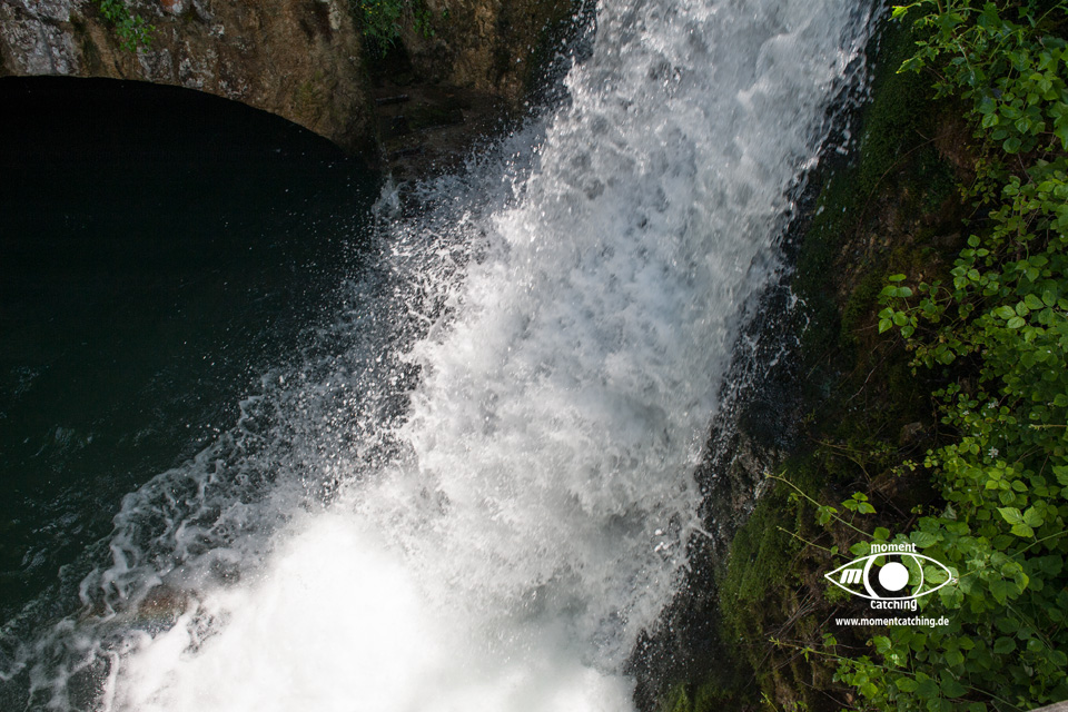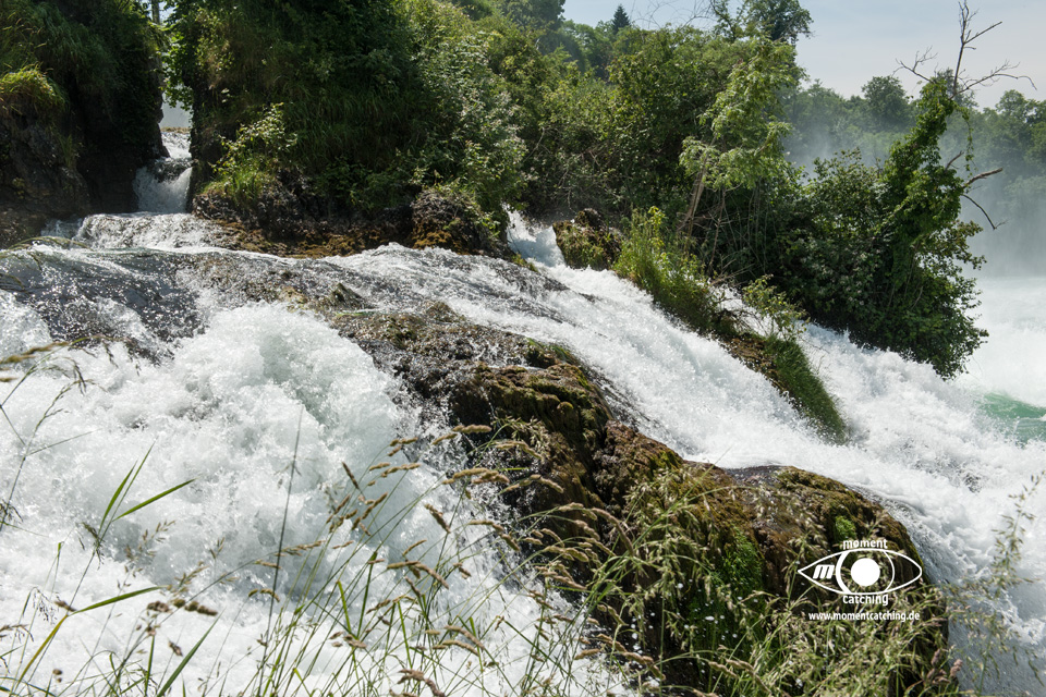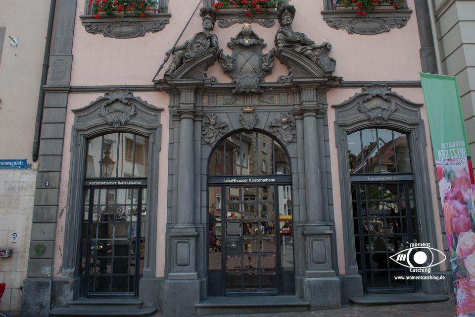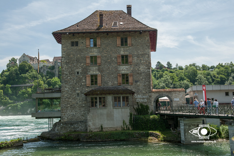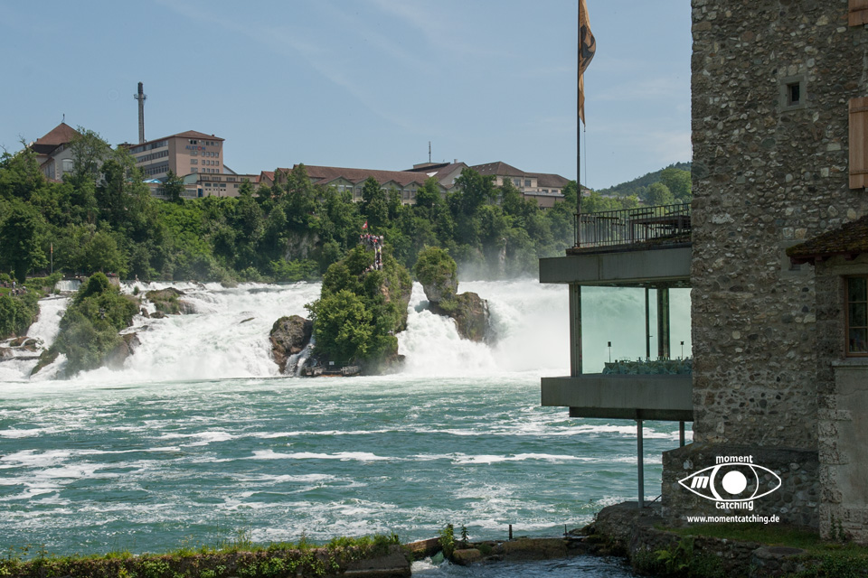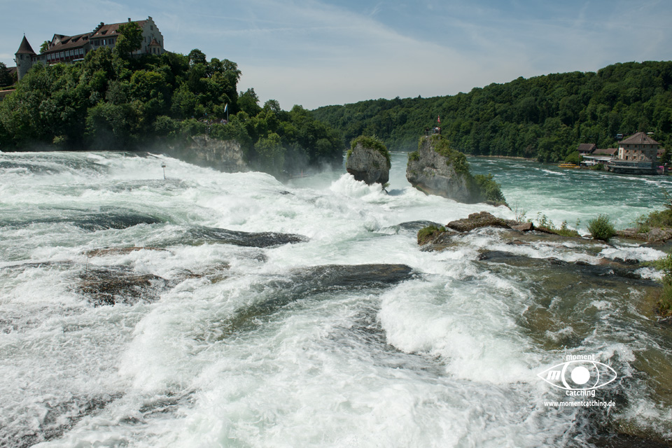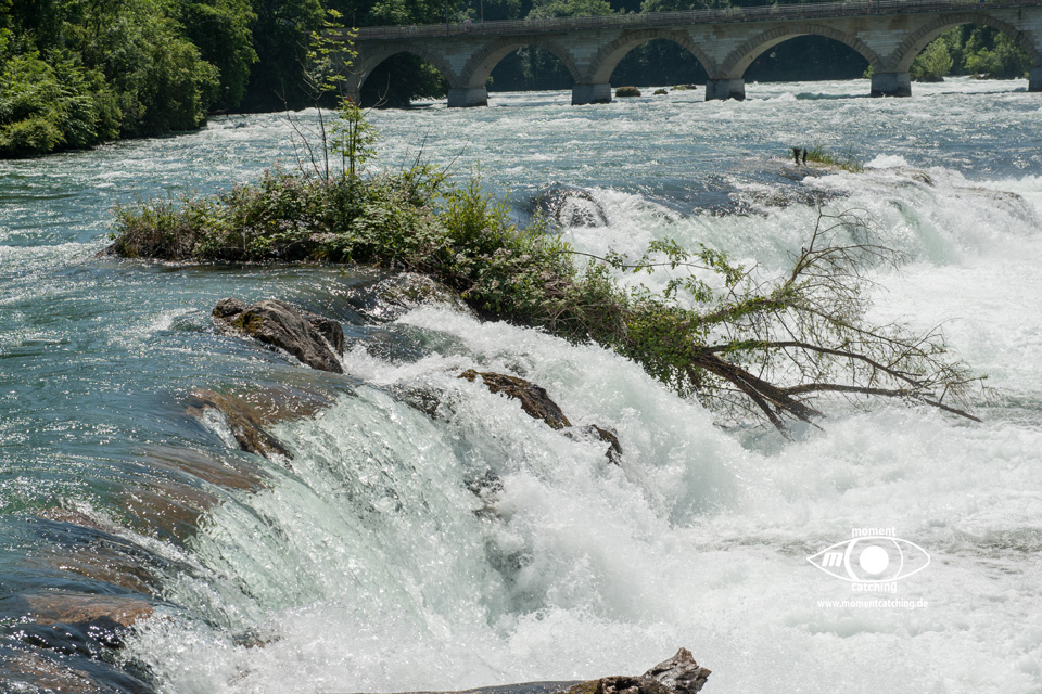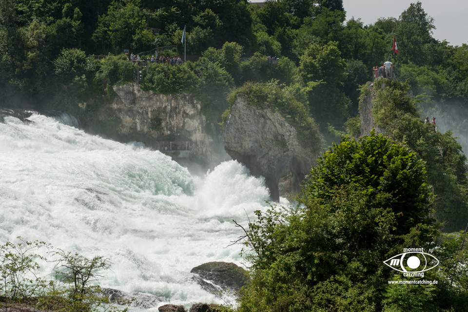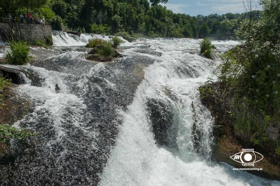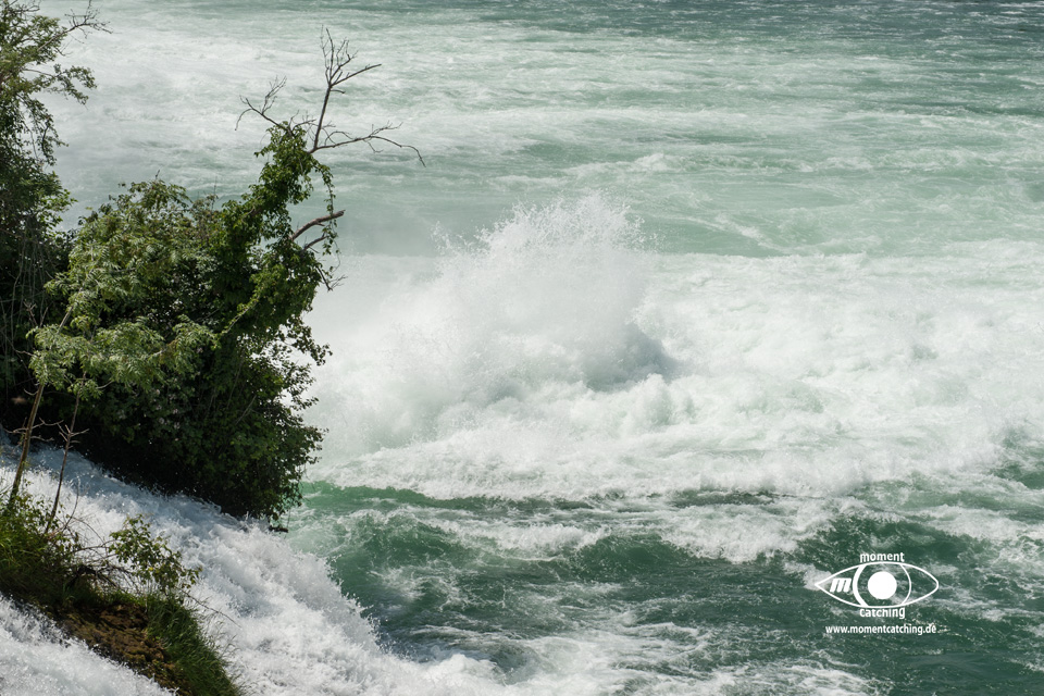 Es gab wieder aufgewärmte Baguetts aus Frankreich. Um 11:00 Uhr ging unser Zug nach Schaffhausen. Gleich am Anfang von Schaffhausen haben wir den Rheinfall vom Zug aus gesehen. Der Zug fuhr dann aber noch ein riesiges Ende in die Stadt. Vor dem Bahnhof stand ein Bus, an dem Rheinfall als Ziel stand. Der sehr nette Busfahrer empfahl uns ein Tagesticket zu nehmen, wenn wir wieder zurückfahren wollen. Als wir in Neuhausen austiegen, rief uns der freundliche Busfahrer noch nach, dass wir direkt nach unten gehen sollen und nicht den ausgeschilderten Weg nehmen sollen, da der länger ist. Der Rheinfall war ein absolut schönes Erlebnis. Beeindruckent, welche Wassermassen hier in die Tiefe stürzen. Das gesamte Panorama mit dem Schloss im Hintergrund und dem glasklaren, leicht grün schimmernden Wasser. An dem Schloss Wörtli, wo auch die Boote anlegen, waren große Forellenschwärme. Susanne hatte Entenfutter mit (alte Brötchen). Das war ein lustiges Schauspiel, wie diese Fische selbst die Enten wegschupsten. Die Hitze war leider schon wieder unerträglich. Als wir vom Wasserfall wieder oben ankamen, fuhr gerade der Bus Nr. 1 vor, der uns wieder nach Schaffhausen brachte. In Schaffhausen haben wir uns noch Teile der Altstadt angesehen. Die Preise in der Schweiz sind gute 30-40 % höher als bei uns. Der Euro mit 1,05 SF steht auch nicht gerade günstig für uns. Unseren Konsum haben wir auf zwei kalte Selters beschränkt. Um 15:15 Uhr haben wir Schaffhausen wieder verlassen und sind pünktlich um 16:07 Uhr wieder in Bad Säckingen eingetroffen. In der Altstatt am Münsterplatz haben wir eine Gaststätte aufgesucht und lecker gegessen. Leider mussten wir zwischendurch von draußen nach drinnen wechseln, weil es anfing zu regnen. Auch auf dem Weg zum Womo hat es noch geregnet. Das war aber richtig angenehm. Den Rest des Abends haben wir ferngesehen und ich habe Bilder und Video aufgearbeitet.