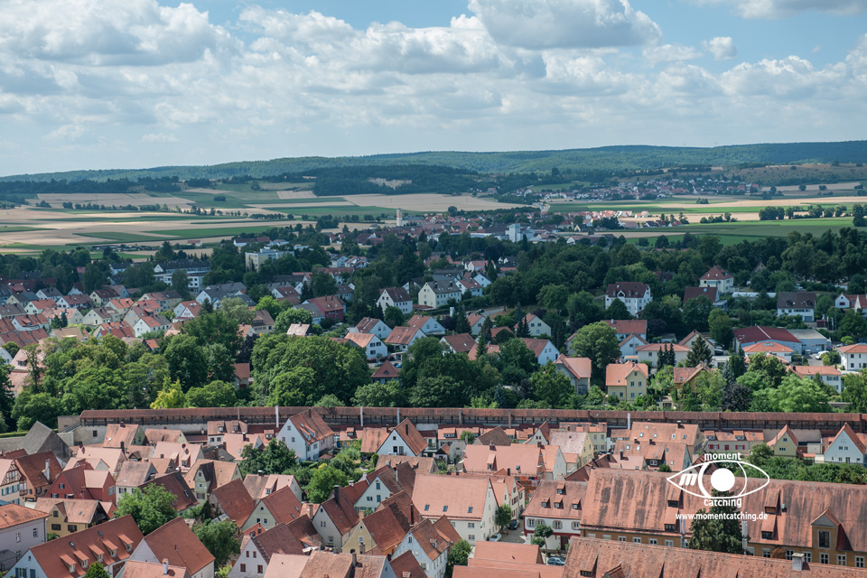 - Von Caravan Wendt aus ging es dann in Etappen Richtung Süden. Bevor wir jedoch bei Rosemarie und Werner eintrafen, haben wir einen Zwischenstopp in meiner Geburtsstadt Nördlingen gemacht. Ich habe zwar keine wirklichen Erinnerungen an diese Stadt, aber sie ist richtig schön. Eine der wenigen, bei der die komplette Stadtmauer noch erhalten ist und man einmal ringsherum laufen kann.