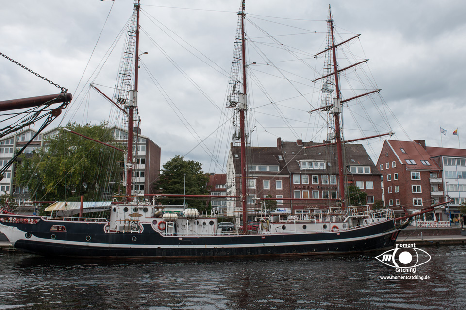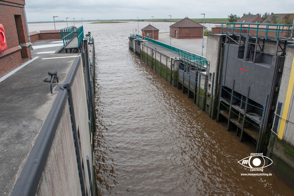 Das Stauwerk ist wirklich beeindruckend. Unsere Rücktour führte uns dieses mal vor dem Deich lang. Da gab es sogar einen regulären Radweg. Das hat richtig Spaß gemacht und meine neue Jacke hat die Bewährungsprobe bestanden. Ich bin nicht nassgeschwitzt. Also können wir am Montag noch eine für Susanne besorgen. Nach dem Kaffee habe ich mal wieder meinen Liegestuhl benutzt mit Blick auf das Hafengelände. Die neue Decke ist so richtig kuschelig und wärmt gut. Zum Abend wollten wir in den Griechen gehen, den wir bei einem Spaziergang bei uns entdeckt haben. Als wir davor standen, stellten wir fest, dass es sich dabei ledeglich um einen Lieferservice handelt. Also sind wir weiter in die Stadt gelaufen. Auf dem Museumsschiff Emden sind wir in das kleine Bordrestaurant gegangen. Wir hatten Glück, dass wir den letzten freien Tisch drinnen erwischt haben. Ich habe Matjes mit Bratkartoffeln und Susanne hatte Labskaus gewählt. Beide Essen waren absolut Top. Diese kleine Gaststätte ist dann sogar ein Geheimtipp, zumal auch der Preis stimmt.