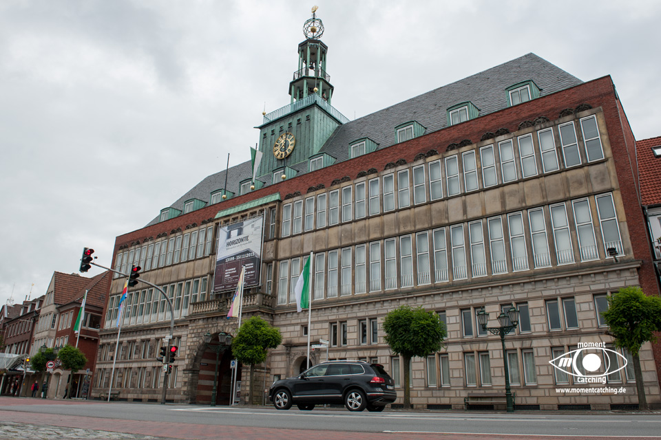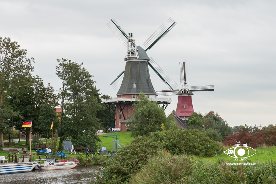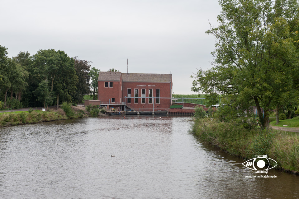 Als wir ein Stück den Wallweg genommen hatten, kamen wir am Schützenhaus an. Hier bereitete sich die Schützengilde gerade auf den Umzug vor. Für uns eine gute Gelegenheit den Start zu filmen. Dann ging es weiter zu der Mühle und dann zu der einzigen noch genutzten Rundschleuse Europas. Hier werden vier Wasserstraßen miteinander verbunden. Das ist schon ein sehr interessantes, technisches Bauwerk. Nun ging es zurück zum Womo. Nach dem wir uns regeneriert haben, sind wir wieder gestartet. Ziel ist nun das Stauwerk der Ems. Ich habe dafür nun meine neue Jacke angezogen, um sie zu testen. Beim Hinweg hatten wir Rückenwind. Unsere EBikes leißen uns gute 25 km/h fahren, mehr geht nicht, tolle Räder.