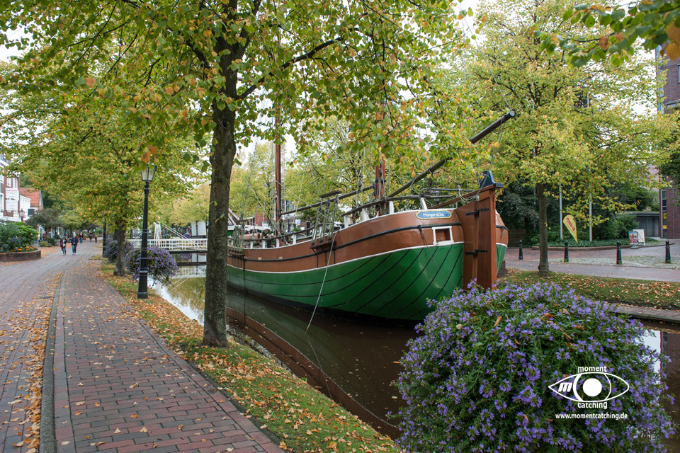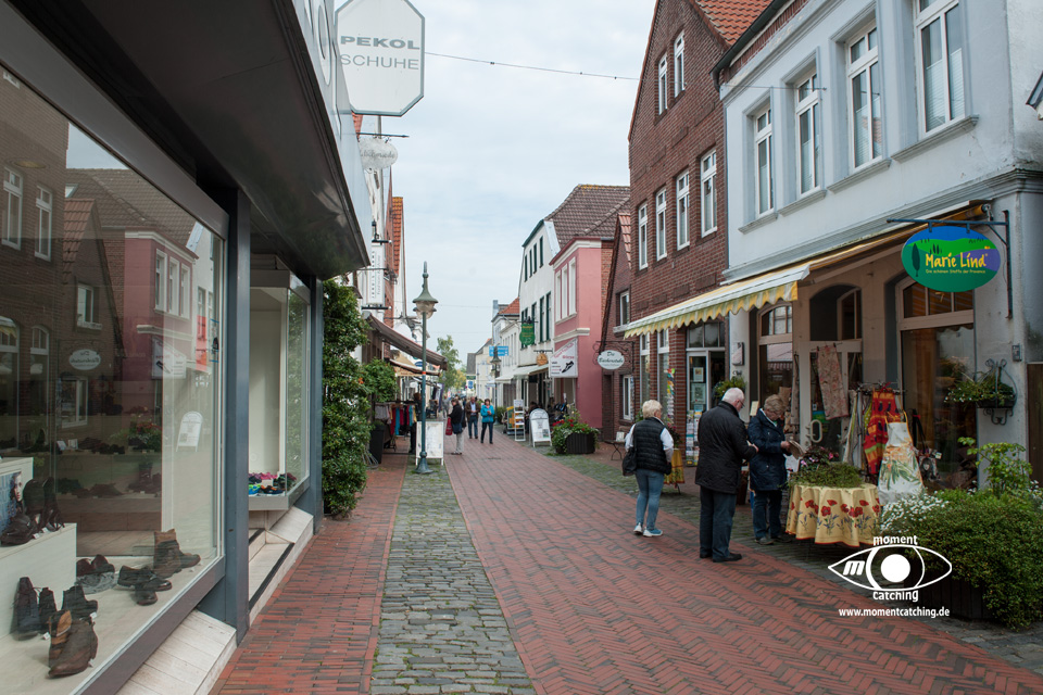 Zu unserem Erstaunen war der Platz richtig voll. Für unsere Länge war nur noch ein einziger Platz frei. Da wir rückwärts eingeparkt sind, passten wir gerade so rein. Durch das Rückwärtseinparken konnten wir hinten etwas überstehen. Vor uns lag nun aus unserer Sitzecke blickend direkt der Binnenhafen. Traumhaft schöner Ausblick. Wie immer haben wir einen Spaziergang in die Stadt gemacht. Eine sehr schöne Stadt. Wir haben sogar einen Fahrradladen gefunden, der genau so eine kleine Tasche im Angebot hat wie Susanne es sich vorgestellt hat. Wir haben sie erstmal zurücklegen lassen und kommen mit den Fahrrädern sie abholen. Im Womo waren wir nur auf der Toilette, um dann noch einen Abstecher zu dem nahegelegenen Einkaufzentrum zu machen. Dort ist ein relativ großes und neues EDEKA. Danach war Kaffeetrinken mit der leckeren Torte aus Greetsiel angesagt.
