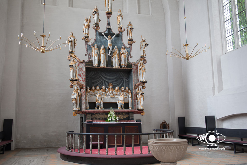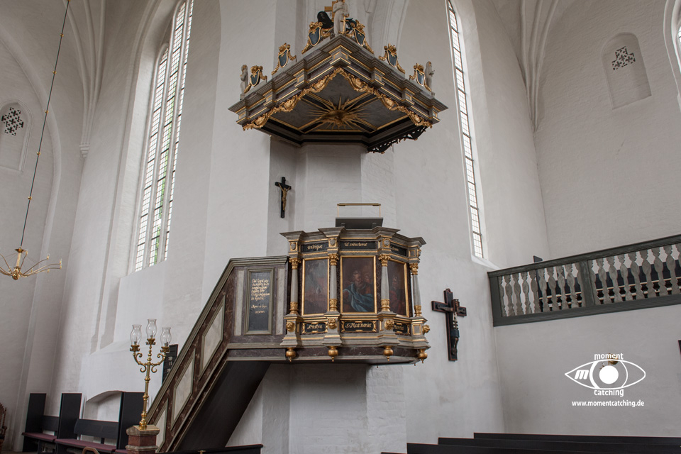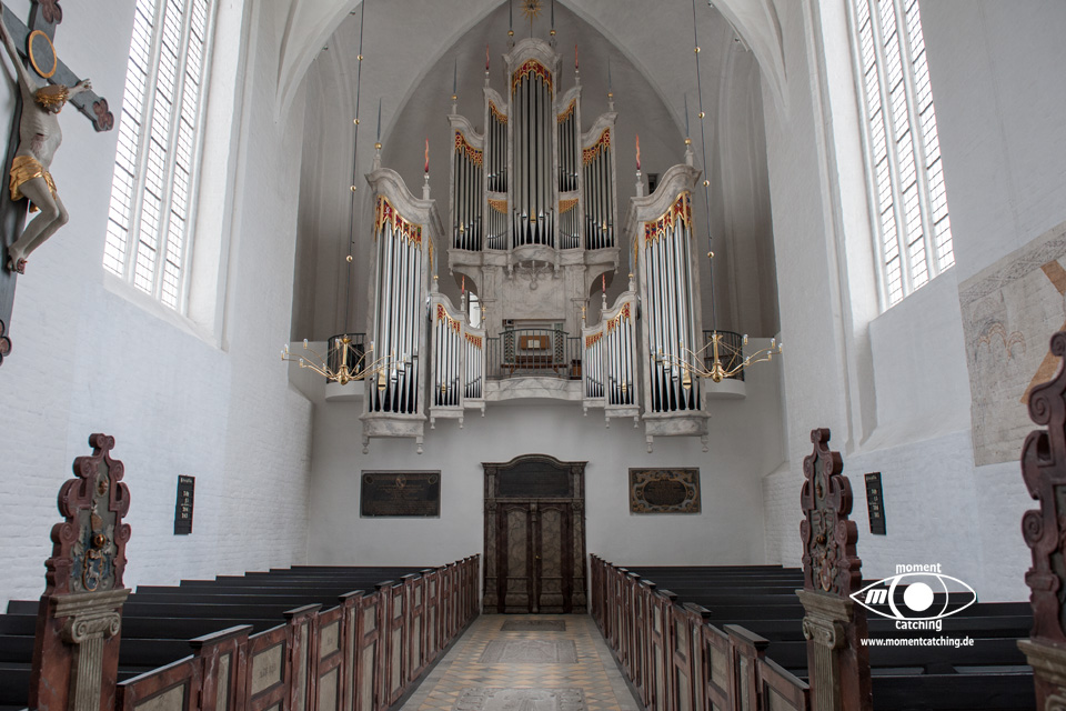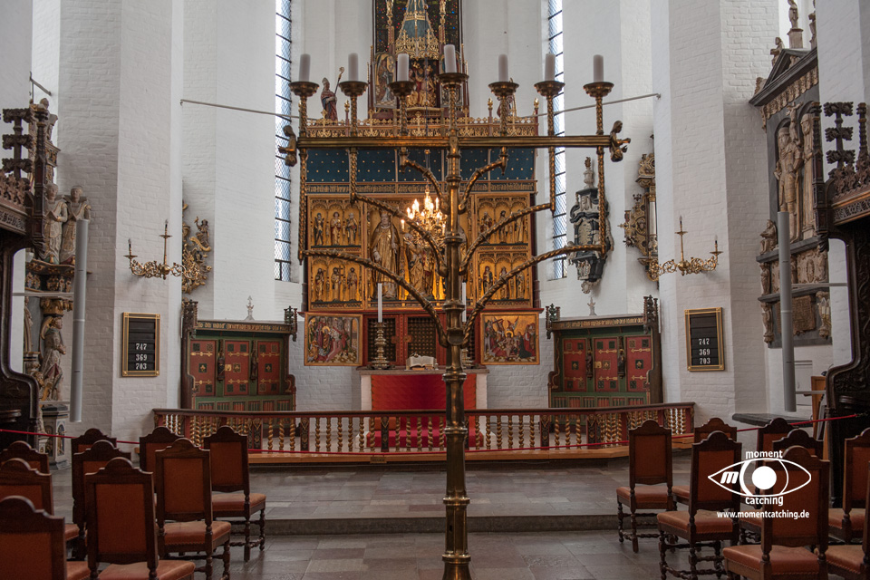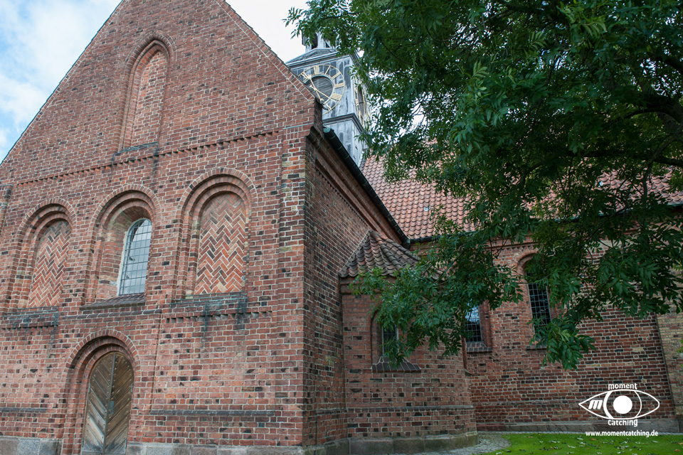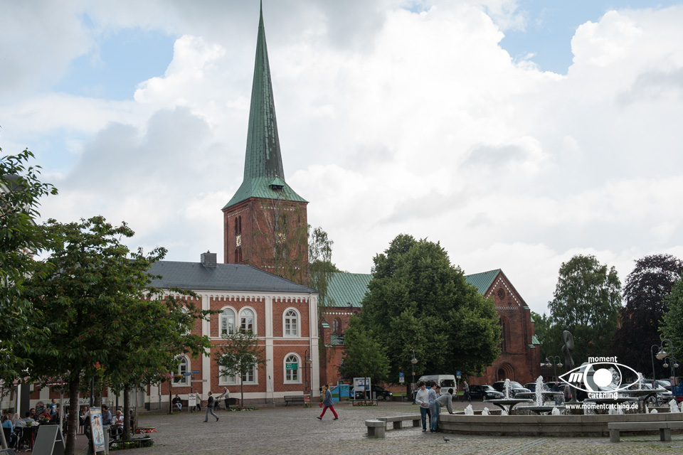 Heute Nacht hat es auch wieder einige Schauer gegeben. Egal, wir hatten uns ohnehin schon fürs Weiterfahren entschieden. Nach dem Frühstück haben wir die V+E-Station angesteuert. Wir haben nur Wasser gebunkert und das Grauwasser abgelassen. Das Navi hat uns die erste Hälfte der Wegstrecke über sehr kleine Landstraßen geschickt. Das war sehr schön, weil wir dadurch die Landschaft besser genießen konnten. Die Zufahrt zum Stellplatz gestaltete sich etwas abenteuerlich. Vor dem Stellplatzgelände ist eine Schranke, die man nur mit der Tellycart öffnen kann. Der Automat ist gute 150 Meter entfernt, leicht versteckt beim Hafenkontor. Ein wartender Däne hat mit seiner Karte uns die Schranke geöffnet. Ich bin daraufhin hinter gefahren zum Stellplatz. Susanne ist zum Automaten gegangen und hat uns eine Karte besorgt. Neben uns steht ein Caravan mit einem großen Vorzelt. Hinter uns ist zwar ein Deich, aber durch unsere Höhe sehen wir die Ostsee trotzdem. Nach dem zweiten Frühstück haben wir bis zum Kaffee gefaulenzt. Nach dem Kaffee sind wir mit den Rädern in die Altstadt gefahren. Es gibt hier eine fast endlos erscheinende Fußgängerzone mit unzähligen Lokalitäten, die auch gut besucht sind. Bei den Preisen ist uns das total schleierhaft. Wir sind dafür zu geizig. Auf jeden Fall hat uns das Flair hier richtig gut gefallen. Eine besondere Sehenswürdigkeit war auch die Domkirche. Nachdem wir unseren Lebensmittelvorrat aufgefrischt haben sind wir wieder zum Womo zurückgefahren. |