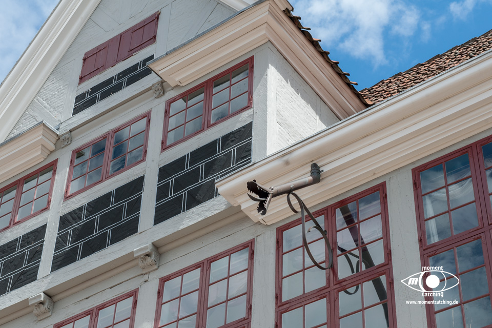 Es war eine ruhige Nacht, ohne große Sturmböen. Als wir aufgestanden sind gab es größere Wolkenlücken, so dass die Sonne herein blinzeln konnte. Nach dem Frühstück sind wir zu Fuß gestartet. Vorbei an Lidl und Aldi sind wir zuerst beim Schloss gelandet. Es hatte noch nicht geöffnet, aber wir wären ohnehin nicht hineingegangen, dazu war das Wetter viel zu schön. Im Innern wären sowieso überwiegend wechselnde Kunstausstellungen. Sehr beschaulich ist auch die neben dem Schloss befindliche Wassermühle. Von da aus sind wir in die Altstadt gegangen. Im Rathaus haben wir die Touristeninfo geplündert. Danach haben wir die Nikolaikirche besichtigt. Über den Rest der Fußgängerzone sind wir wieder abgestiegen in Richtung Hafen. Auf dem Weg zum Womo haben wir noch ein Brot und eine deutsche Fernsehzeitung besorgt. Am Womo angekommen haben wir die Gartenmöbel herausgeholt und bis zum Abendbrot hat sich der Rest dann draußen abgespielt. Am Abend gab es dann das Fußballspiel Deutschland gegen Frankreich. Leider war das dann auch das letzte Spiel der deutschen Fußballelf. |