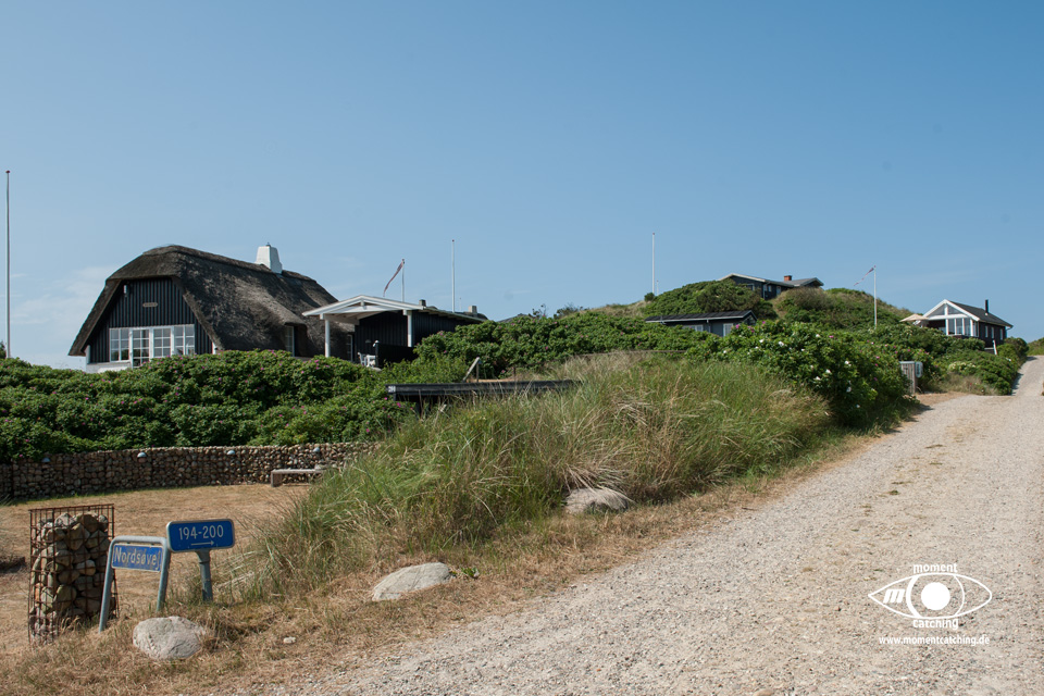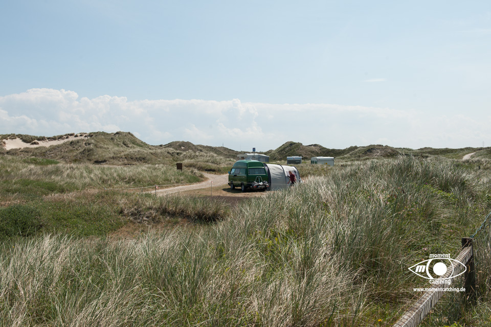 Heute Nacht hat es aufgehöhrt zu regnen. Der Himmel war aber noch verhangen. Ungehemmt gegenüber dieser Situation haben wir uns auf die Räder geschwungen und sind nach Hanstholm gefahren. Trotz eines kleinen Irrweges haben wir das Bunkermuseum gefunden. Das Museum ist sehr gut gemacht. Wir sind auch mit der kleinen Munitionsbahn gefahren. Das ist zwar ganz niedlich, aber man fährt nur durch eine Waldschneise und durch zwei weitere Bunker, von denen man aber gar nichts sieht, außer Betonwände. Besser wäre, wenn die Bahn unterwegs anhalten würde und man sich weitere Bunker ansehen könnte, um dann mit der Bahn weiter zu fahren. Nach dem Bunkerbesuch haben wir uns den Hafen angesehen. Es ist immerhin der größte Fischereihafen von Dänemark. Danach waren wir im SPAR im Hafen und haben Kartoffeln und ein weiteres Weißbrot besorgt. Der Ort Hanstholm ist eine große Einfamilienhaussiedlung ohne jeden Charme. Es gibt hier ein großes Einkaufscenter, was von außen eher unscheinbar erscheint. Drinnen waren wir völlig fasziniert über die Größe dieses Centers. Passt eigentlich gar nicht zu diesem Ort. Den Heimweg haben wir schneller gefunden und er war auch erheblich kürzer als der Hinweg. Inzwischen schien auch die Sonne und es war angenehm warm geworden. Wir haben unsere Stühle herausgeholt und fast den gesamten Nachmittag draußen verbracht. |