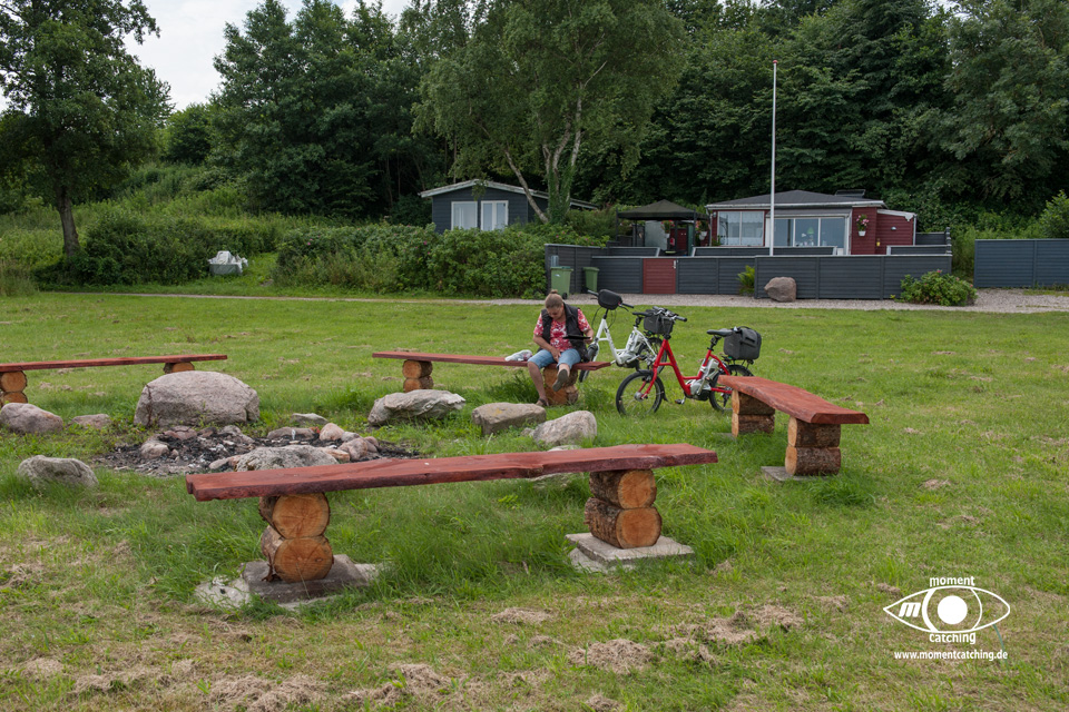 Heute Nacht gab es mehrere Wolkenbrüche. Auch als wir aufgestanden sind war der Himmel düster, aber es hat nicht geregnet. Nach dem Frühstück haben wir den Abwasch gemacht und danach sind wir zum Kvikly gelaufen um noch weitere 8 Einweggrills zu kaufen. Wasser bunkern konnte ich hier an unserem Stellplatz. Nach dem Ablassen des Grauwassers sind wir dann gestartet. Dank der tollen Straßen hier in Dänemark sind wir wieder problemlos auf unserem nächsten Stellplatz in Ræhr gelandet. Unterwegs fing es an zu regnen, was sich dann auf dem Platz fortsetzte. Was für ein tolles Wetter. In Berlin sollen heute 30°C mit Sonnenschein sein. Trotzdem ist der Stellplatz hier sehr schön, mitten in einer lieblichen Landschaft mit Parkcharakter. | |