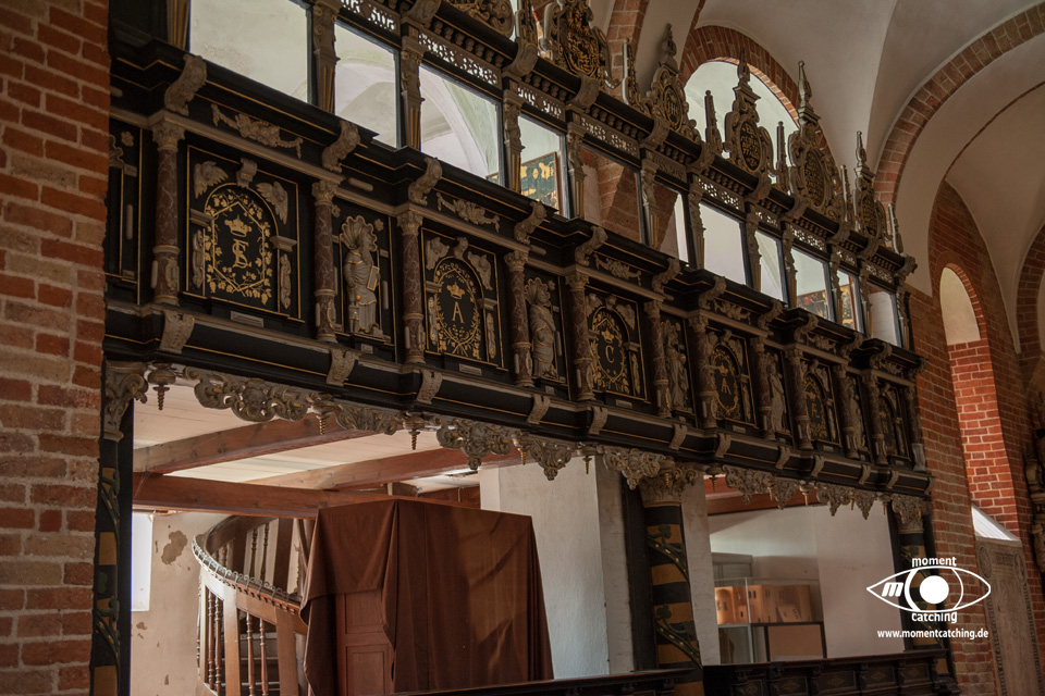 Der Wetterbericht hat auch für heute Schauer vorhergesagt und ab Nachmittag sogar Regen. Wir haben uns nach dem Frühstück auf die Räder geschwungen und sind losgefahren. Just bei der Abfahrt fing Nieselregen an. Wir haben uns nicht beeindrucken lassen. Schon nach ca. 1 km ging der Niesel in richtigen Regen über. Ich wollte umkehren, aber Susanne meinte wir fahren noch ein Stück. Auf halbem Weg nach Mariager hörte es auf zu regnen, also sind wir weiter gefahren. Der Ort hat uns für die anfänglichen Unannehmlichkeiten entschädigt. Im Gegensatz zu Hadsund haben wir hier einen sehr schönen Ort mit alten Häusern und sogar einer Touisteninfo vorgefunden. Wir waren am Hafen und haben dort einen weiteren Stellplatz entdeckt, aber ohne Entsorgung. Auf der anderen Seite des Hafens gibt es einen schönen Campingplatz, aber sauteuer. Die Veteranenbahn wird von einem Dieseltriebwagen gezogen, der wie ein normaler Personenwagen aussah. Ansonsten nichts Aufregendes. Die Klosterkirche ist recht sehenswert. Besonders der Altar und die Orgel. Auf dem Rückweg hielten die Wolken noch dicht, aber genau als die Räder in der Garage waren, kam ein richtiger Wolkenbruch. Ein Glück waren wir jetzt nicht mehr unterwegs. Nach dem Wolkenbruch rissen wieder die Wolken auf und es gab wieder einen Wechsel zwischen Sonne und Wolken. Allerdings wehte jetzt zunehmend ein böiger, teilweise auch kräftiger Wind. Ich habe draußen gesessen und mein Buch weitergelesen und zwischendurch auch geschlafen. |